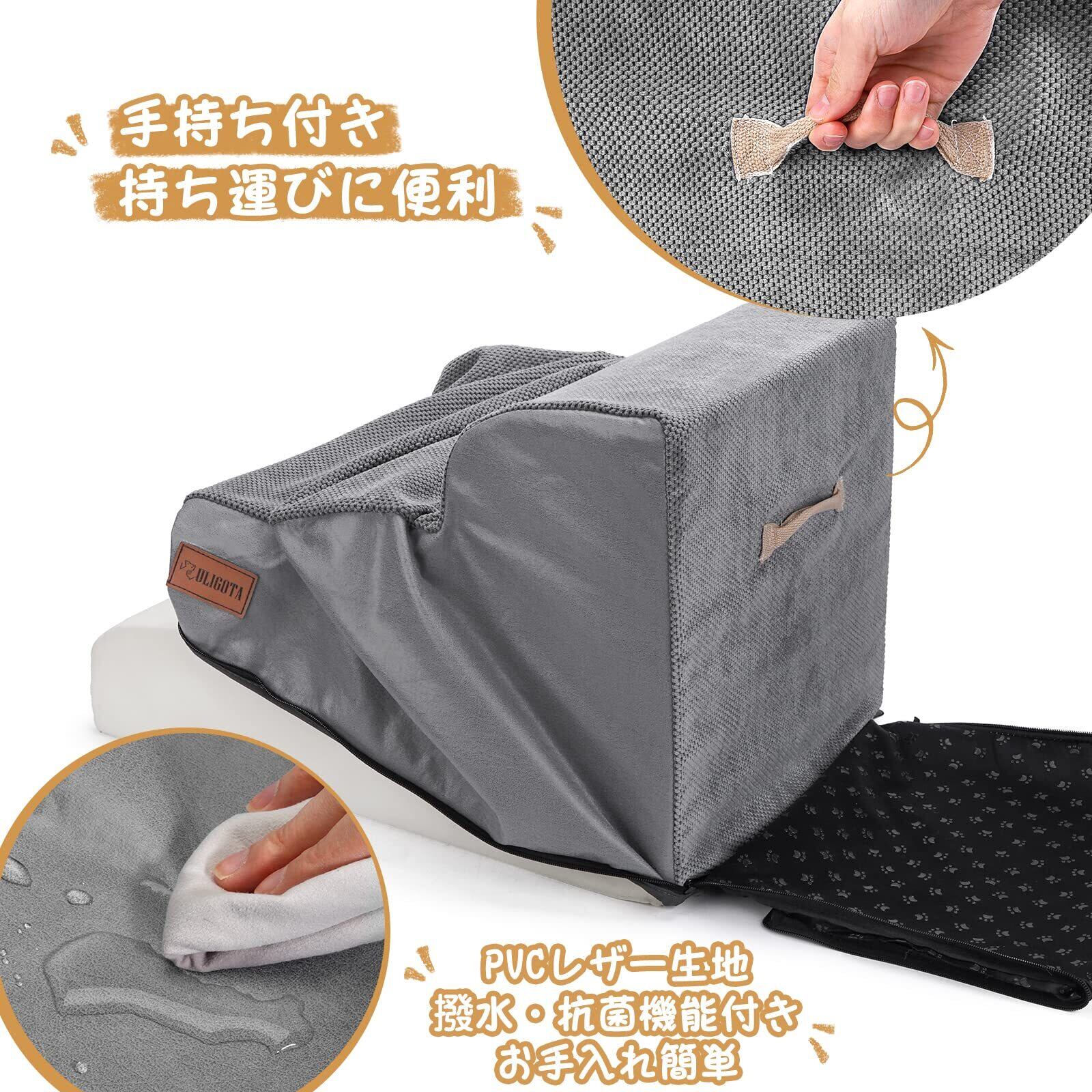犬用ステップ 3段 ドッグステップ 犬用スロープ 犬用踏み台 犬用階段 小型犬 室内犬 高齢犬 滑り止めマット付き カバー取り外し 洗える 手持ち付き(グレー)