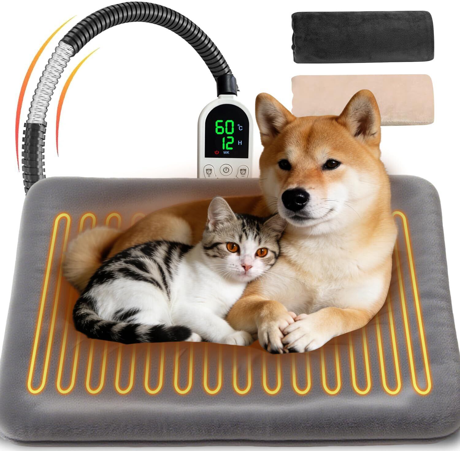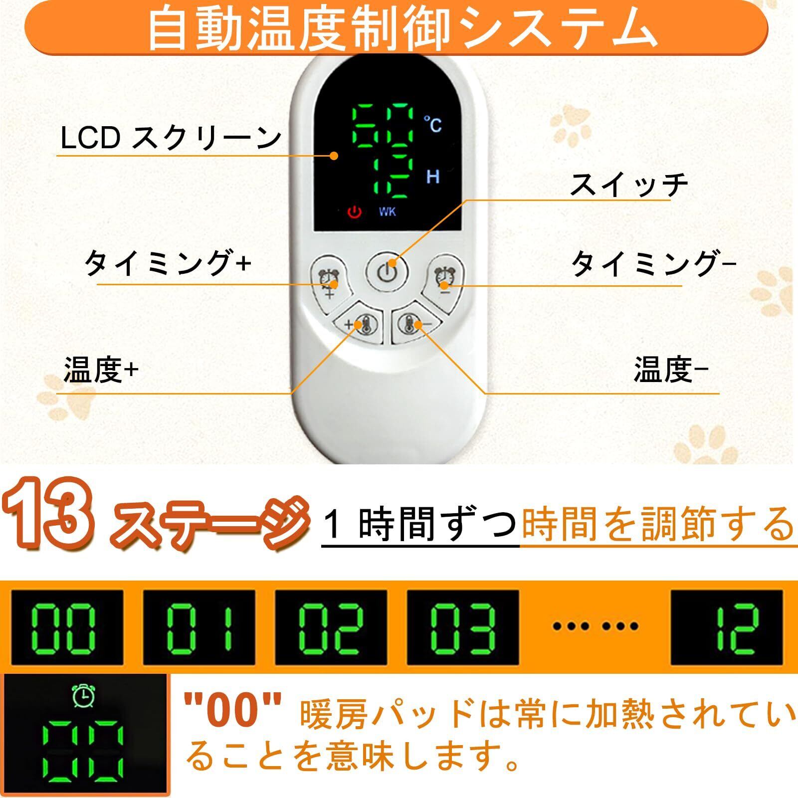 ペット用ホットカーペット【ペット専門家美优子監修】 70x45cmカバー2枚洗濯可能 ペット用ヒーター 犬 猫 冬用 30°C〜60°C温度調節可能 13段階タイマー機能 PSE認証済み猫用ホットカーペット 過熱保護 防水難燃性 コード全て鋼管で保護 噛み癖対策 厚手 柔らか 暖房器具 寒さ対策 犬 ヒーターマット