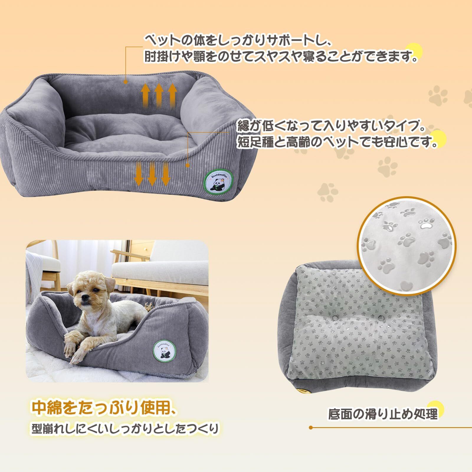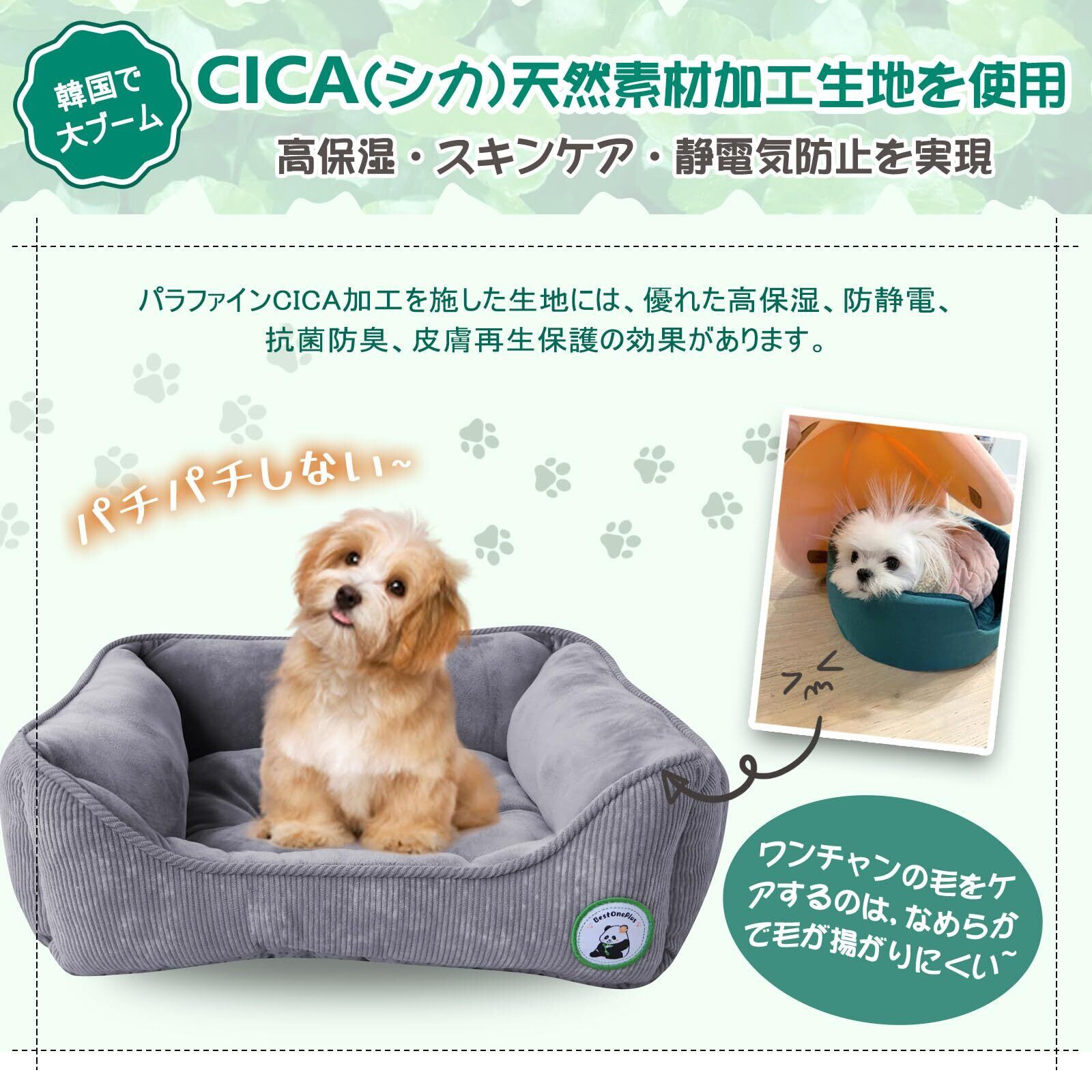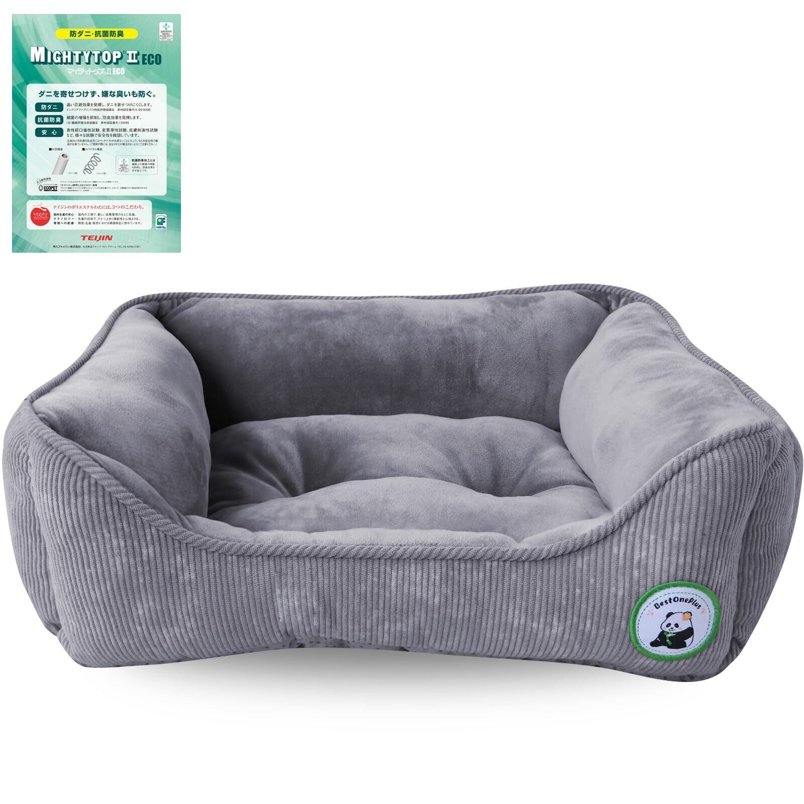 BestOnePlus【帝人TEIJIN中わた】 ペットベッド 猫犬用ベッド 秋冬用 あたっか【獣医師監修】クッション CICA高保湿 ソファベッド 抗菌防臭・防ダニ 春夏秋冬 洗える ふわふわ ネコ いぬ 滑り止め付き 静電気防止 ?みつきに強い スクエア型 M 48x41x15cm グレー