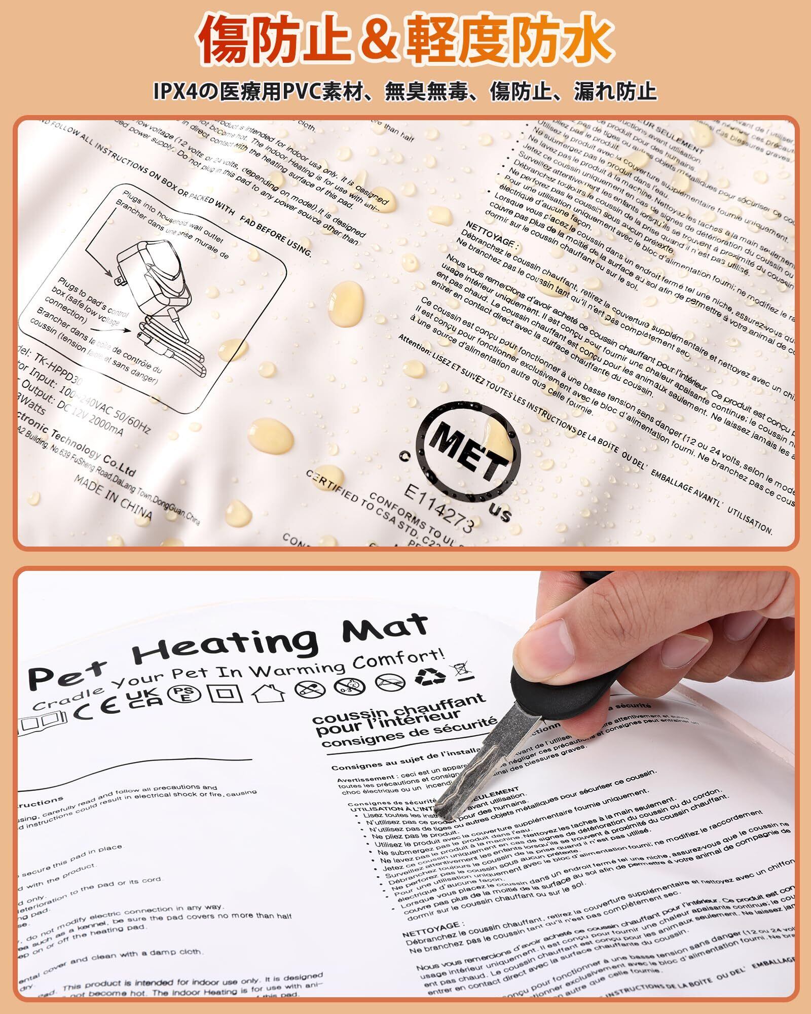 【過熱保護機能】製品内部の電熱線は均等に分布しており、ペットに均一な熱を提供し、より快適です。内蔵の55°温度制御装置により、温度が高くなりすぎることを防ぎ、ペットが火傷するのを防ぎます。
