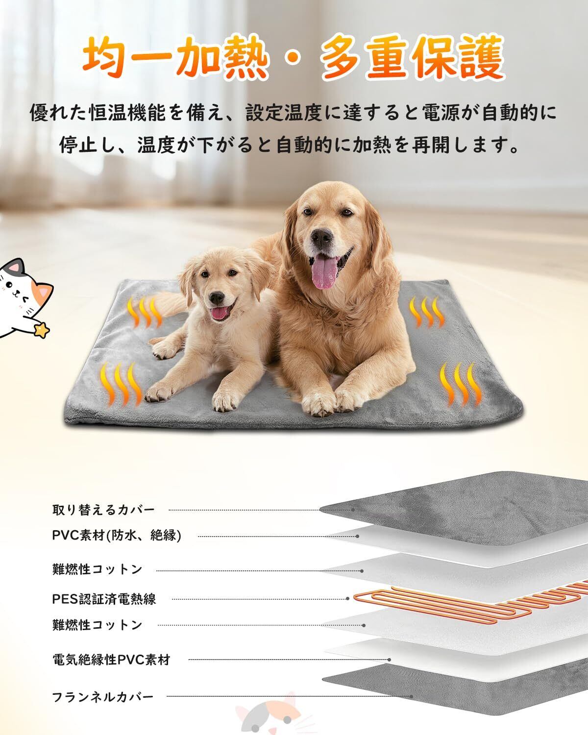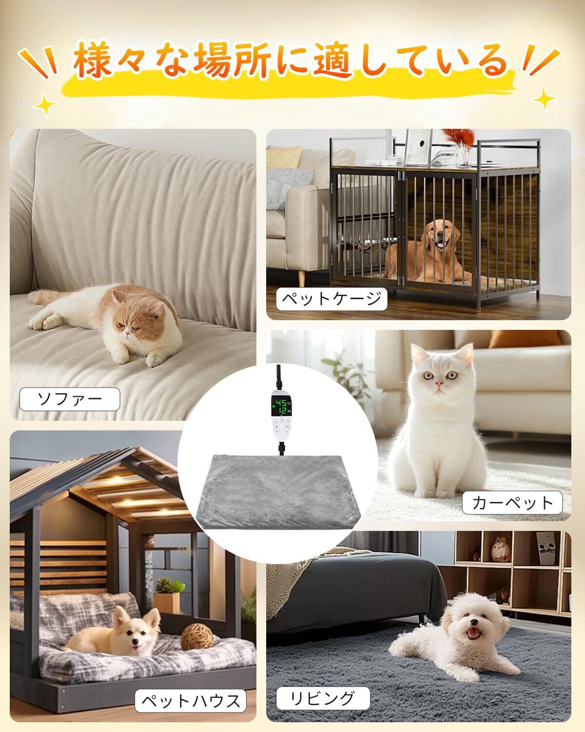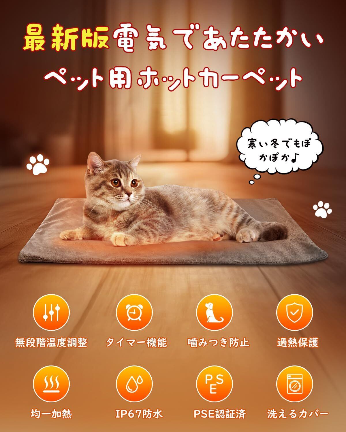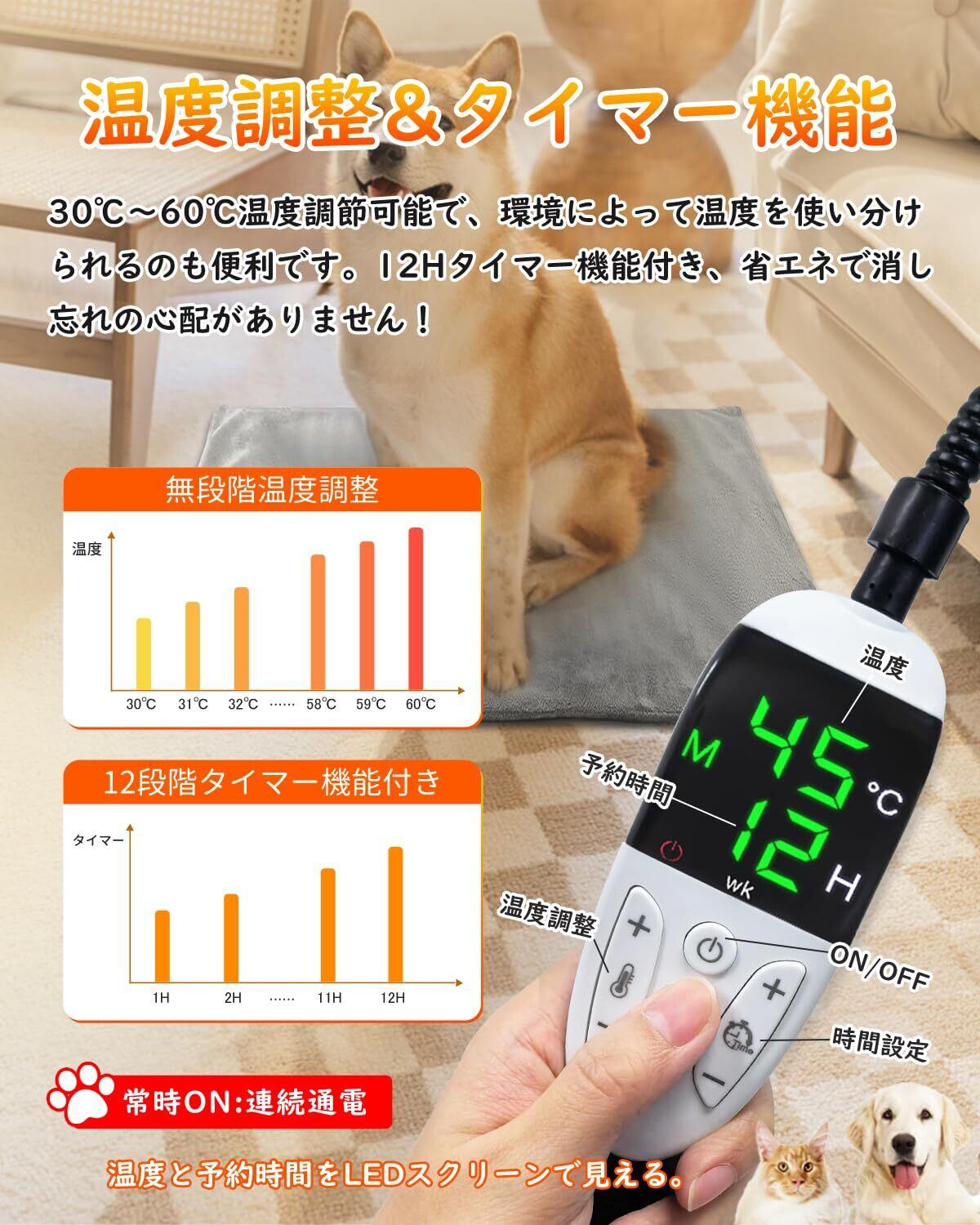 ペット用ホットカーペット ペットヒーター 猫 犬 ホットカーペット 30℃~60℃温度調節可能 12Hタイマー機能 ホットマット ペットマット ヒーター 噛み付き防止 過熱保護 カバー洗える ペット加熱パッド 暖房器具 寒さ対策 あったか ペット用カーペット