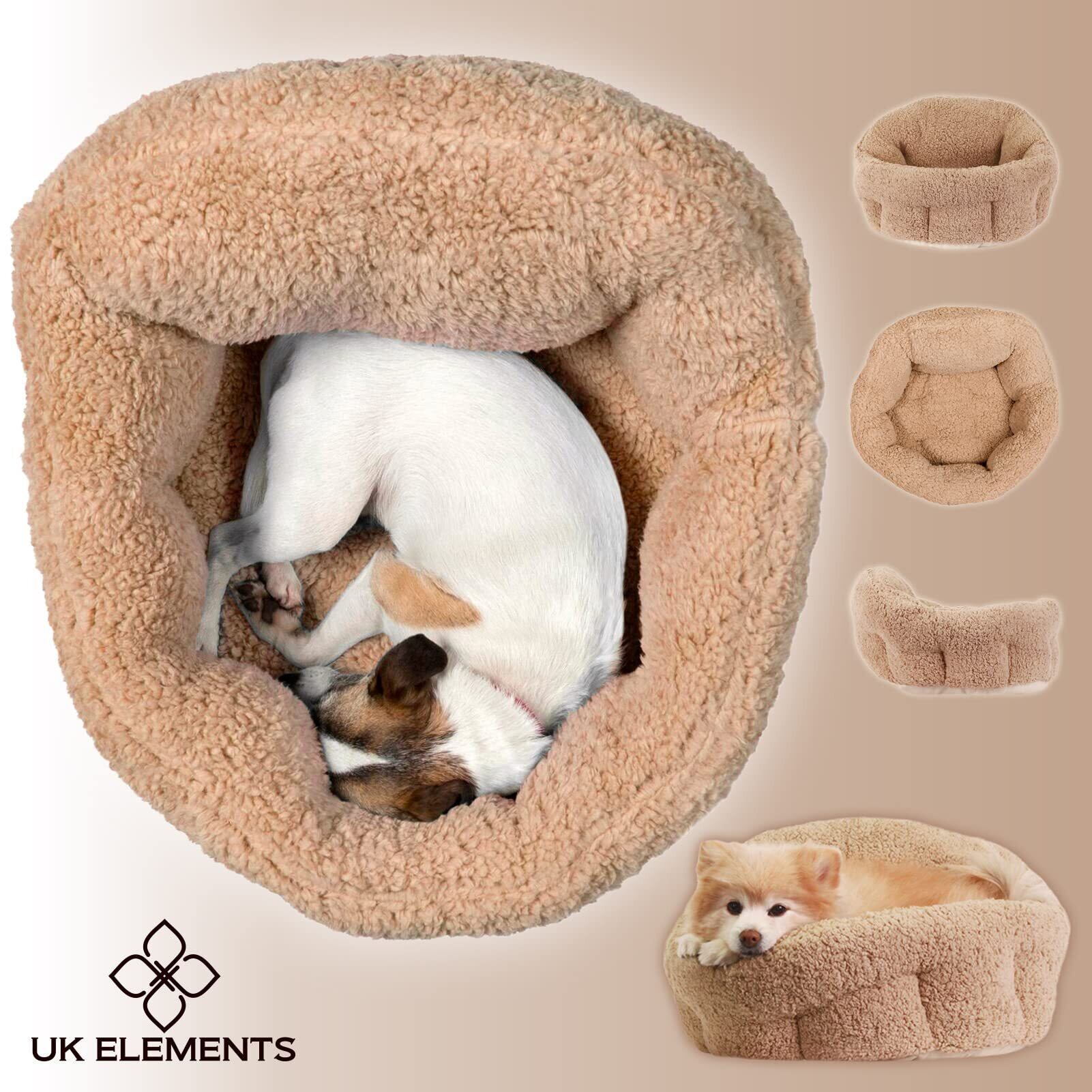 犬 ベッド 小型犬・猫用 ペットベッド クッション 洗える 冬用 直径50cm 伸縮性あり 国内ブランドUK Elements正規品 ベージュ