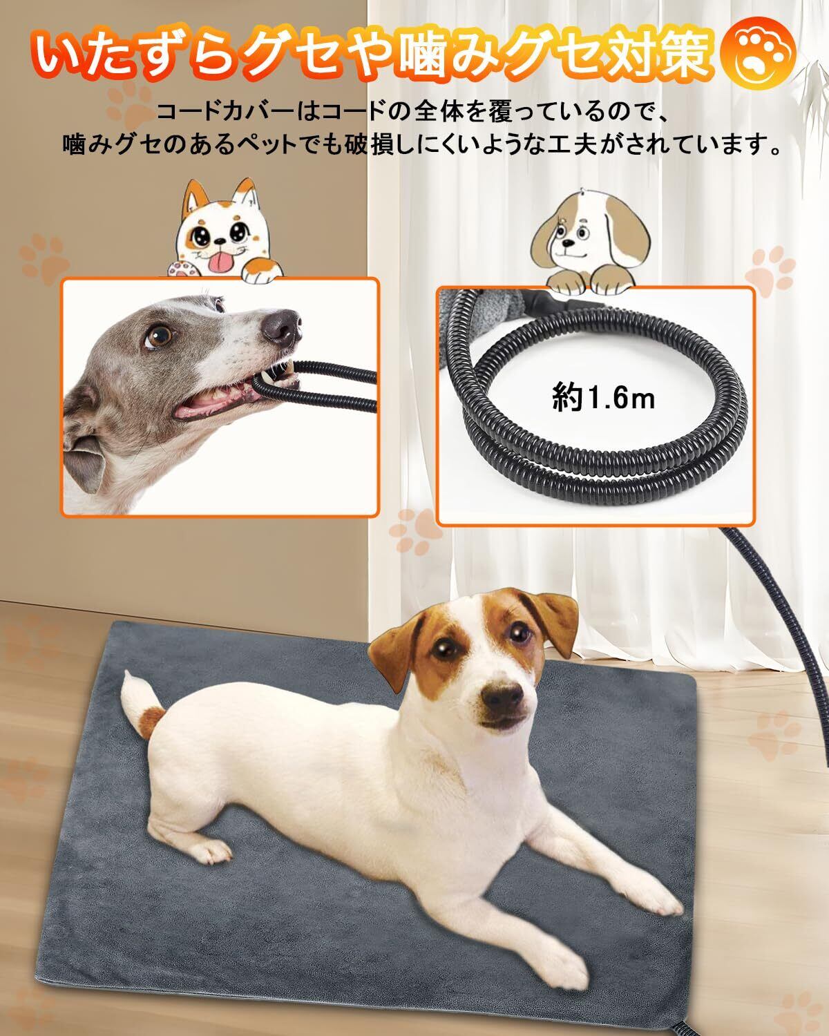 【均一に温まる&噛みグセ対策】 AMZHOOZのペット電気ホットマットの表面温度も全面が均一に温まってほとんどムラがなく、ペットがどこに乗っても温かさを感じられます。コードカバーはコードの全体を覆っているので、噛みグセのあるペットでも破損しにくいような工夫がされています。