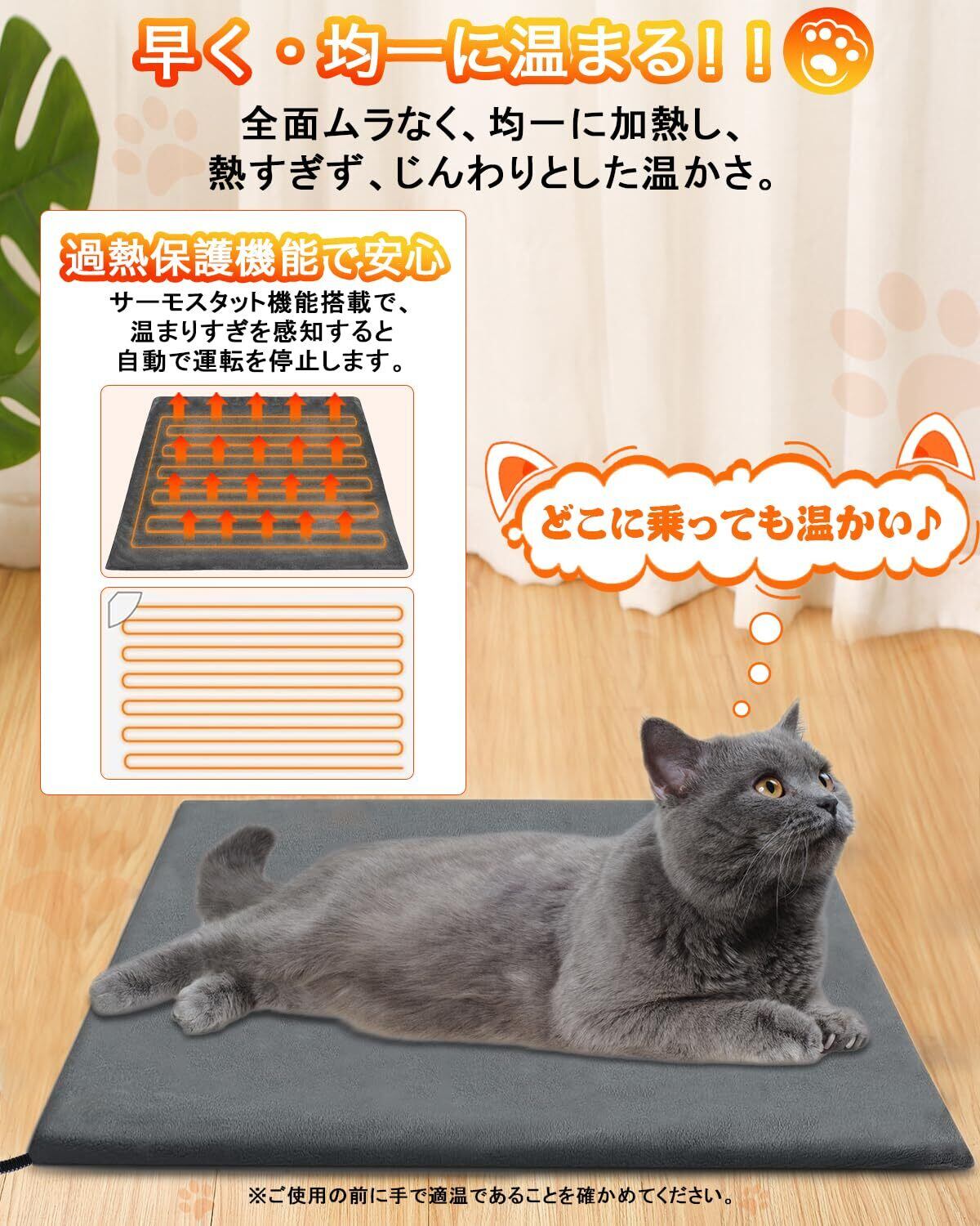 【省エネ&商品詳細】消費電力はわずか25W、1時間使用しても0.6円の電気代と家計に嬉しい節約設計です。サイズ:45*45cm ご使用の対象:チワワなど小型犬、猫、ウサギなど小動物。※ホットマット本体表面の温度は裏面より高めで、使用時は表面を上に。