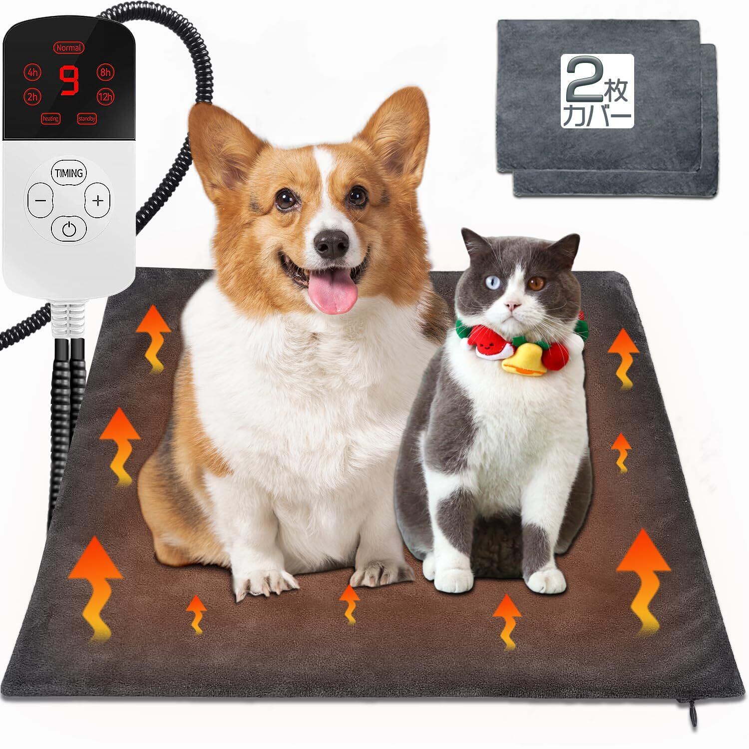 【寒い冬もあったか】 ペット用ホットカーペット 9段階温度調節 ペット用ヒーター 切タイマー 電気ホットマット ペット 犬 猫用 噛みつき防止 防水 過熱保護 丸洗い ふわふわカバー 寒さ対策 45*45cm カバー2枚付き グレー