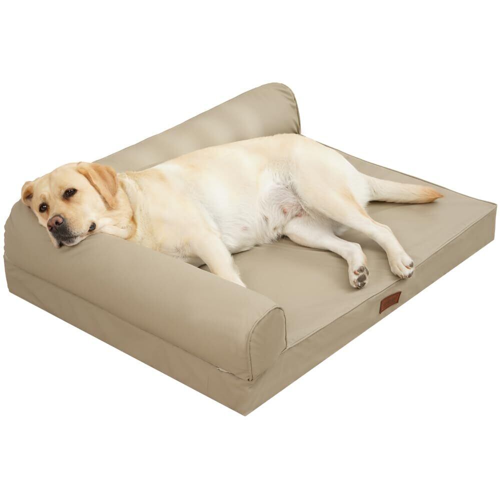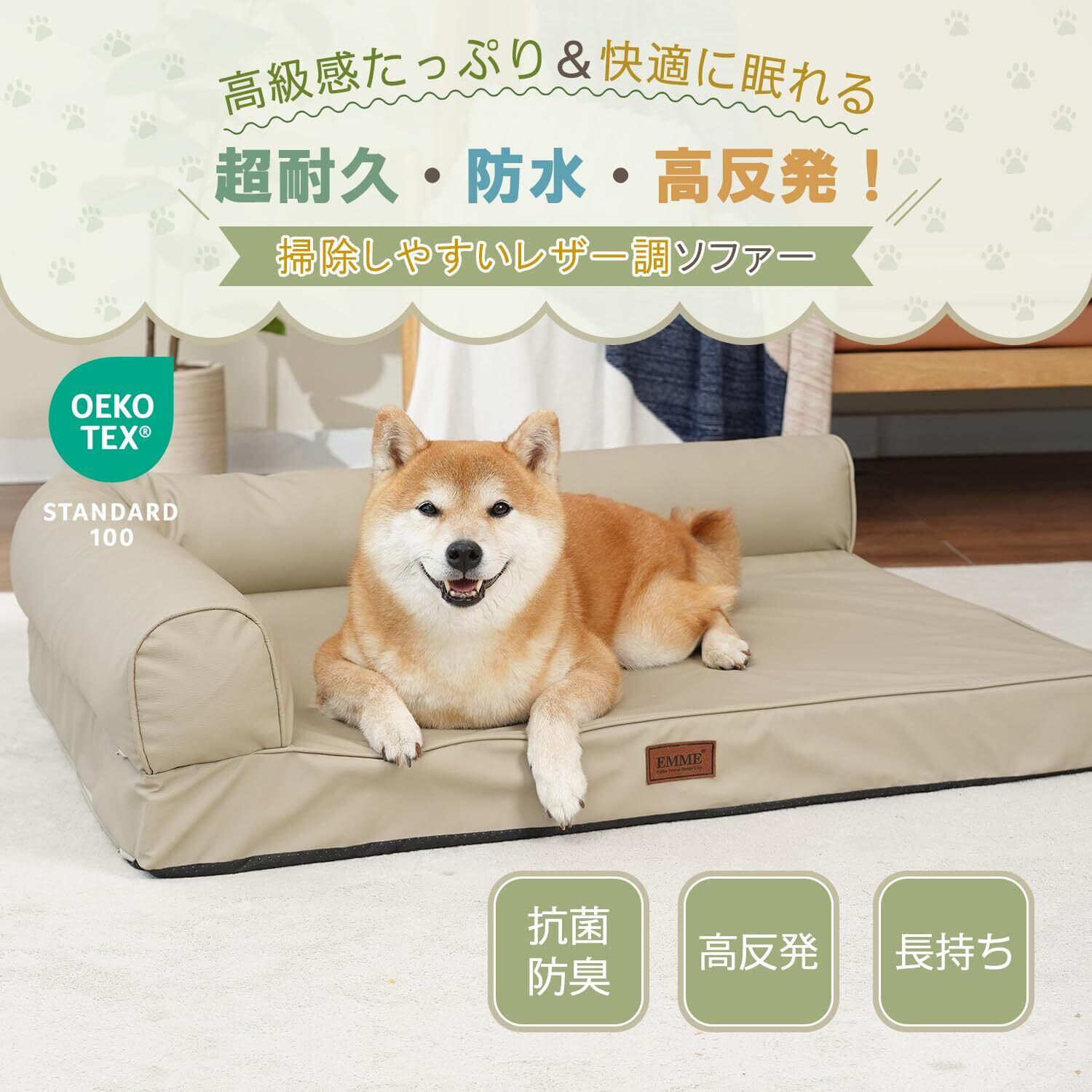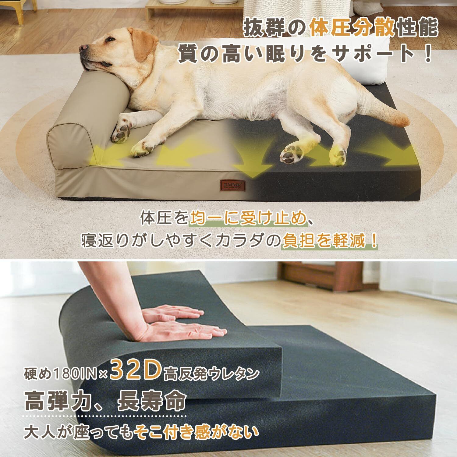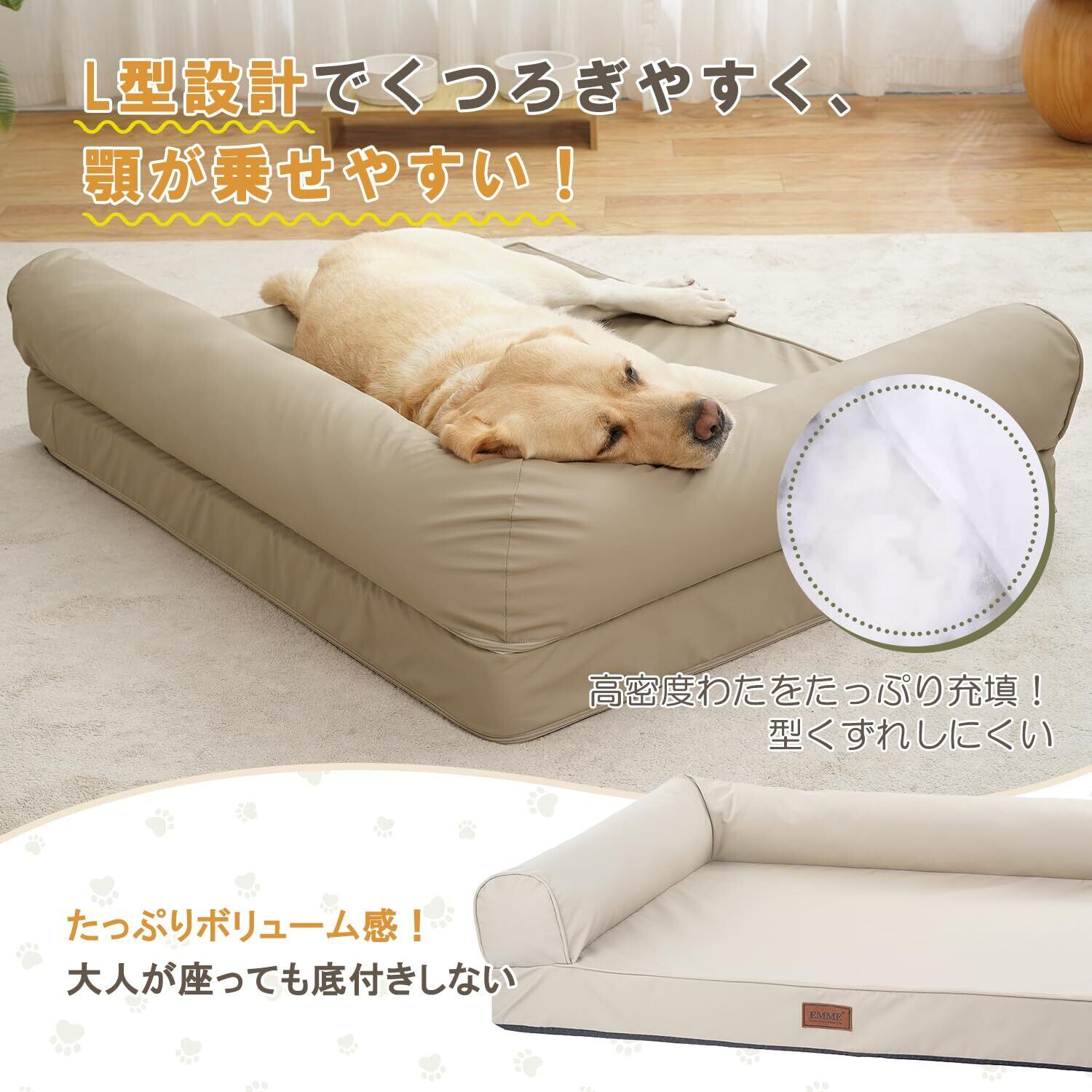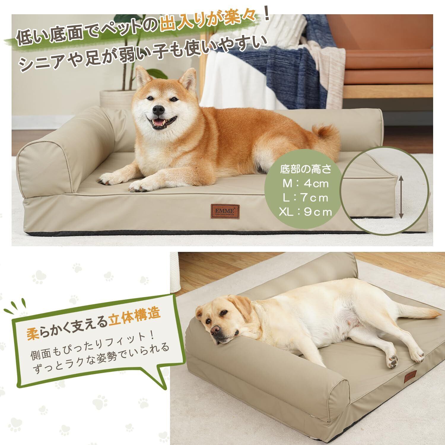 EMME L型犬用ベッド防水防傷ペットベッド レザー調 犬 ソファーベッド 中型犬 大型犬対応ペットクッション高反発 抗菌防臭 ペットソファー 枕付き あごのせ 猫 犬 室内用 寝床 高齢犬 子犬 介護用 ペット用ベッド 掃除しやすい 洗濯不要 滑り止め 取り外せるカバー 通年 100x80x25cm ラクダ色 XLサイズ