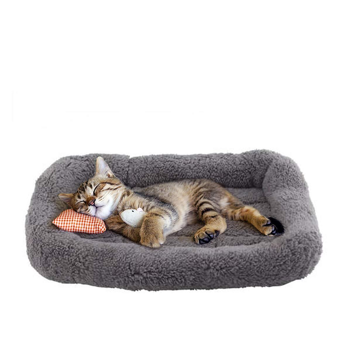 Enjoying 猫 クッション、長方形 小型犬猫用ベッド、ペットベッド ふわふわ クッション、通年じて使える 猫 寝床、枕のあるベッド 猫 座布団 洗える、滑り止め、Sサイズ、グレー