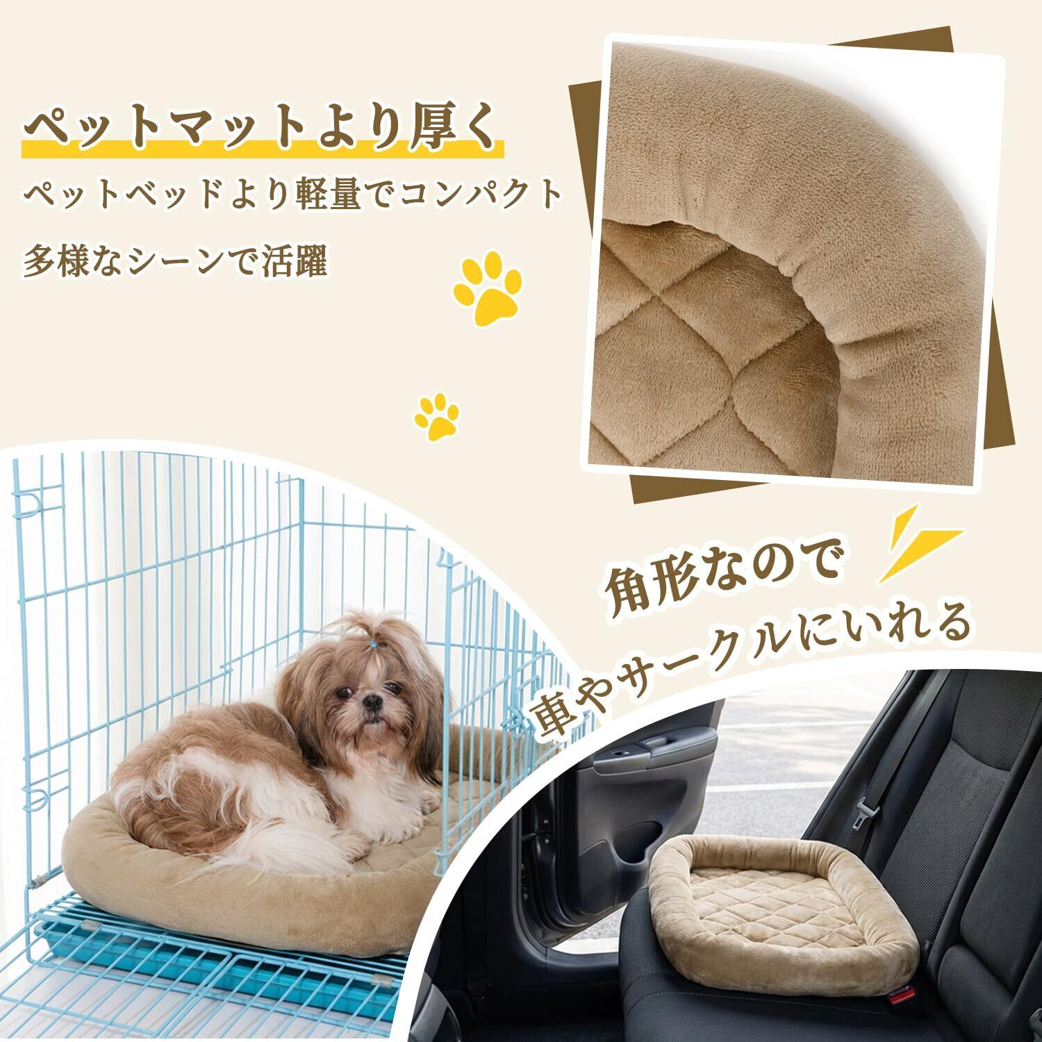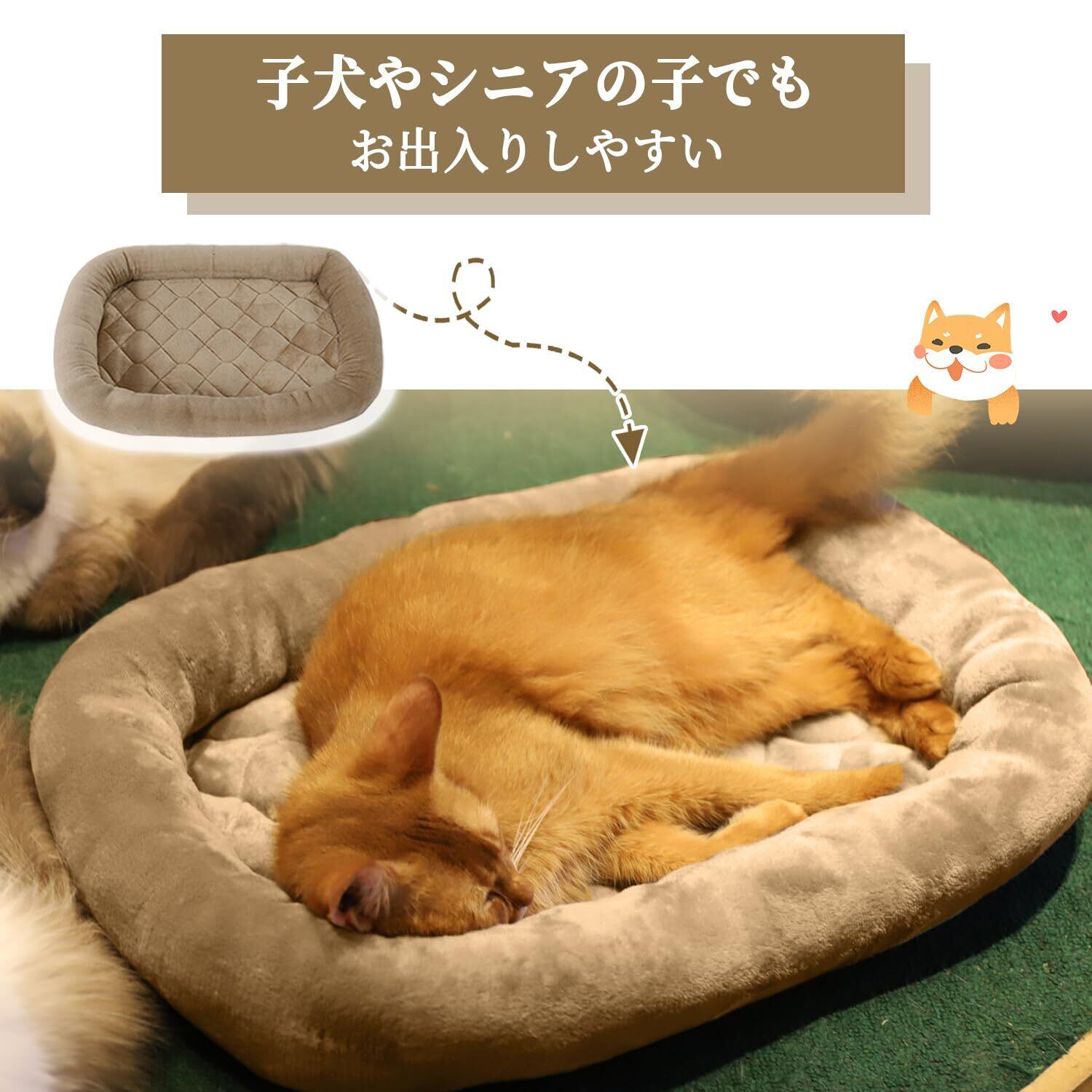 EMME ペットベッド 洗える ペットマット フランネル 犬 ベッド 猫 ペット用ベッド 小型 中型 子犬 老犬 介護 マット 洗える ペット用 クッション 滑り止め 寝心地良い ペット ぺっと 春 秋 冬 夏用 通年 清掃しやすい 56x38cm ラクダ色 Sサイズ