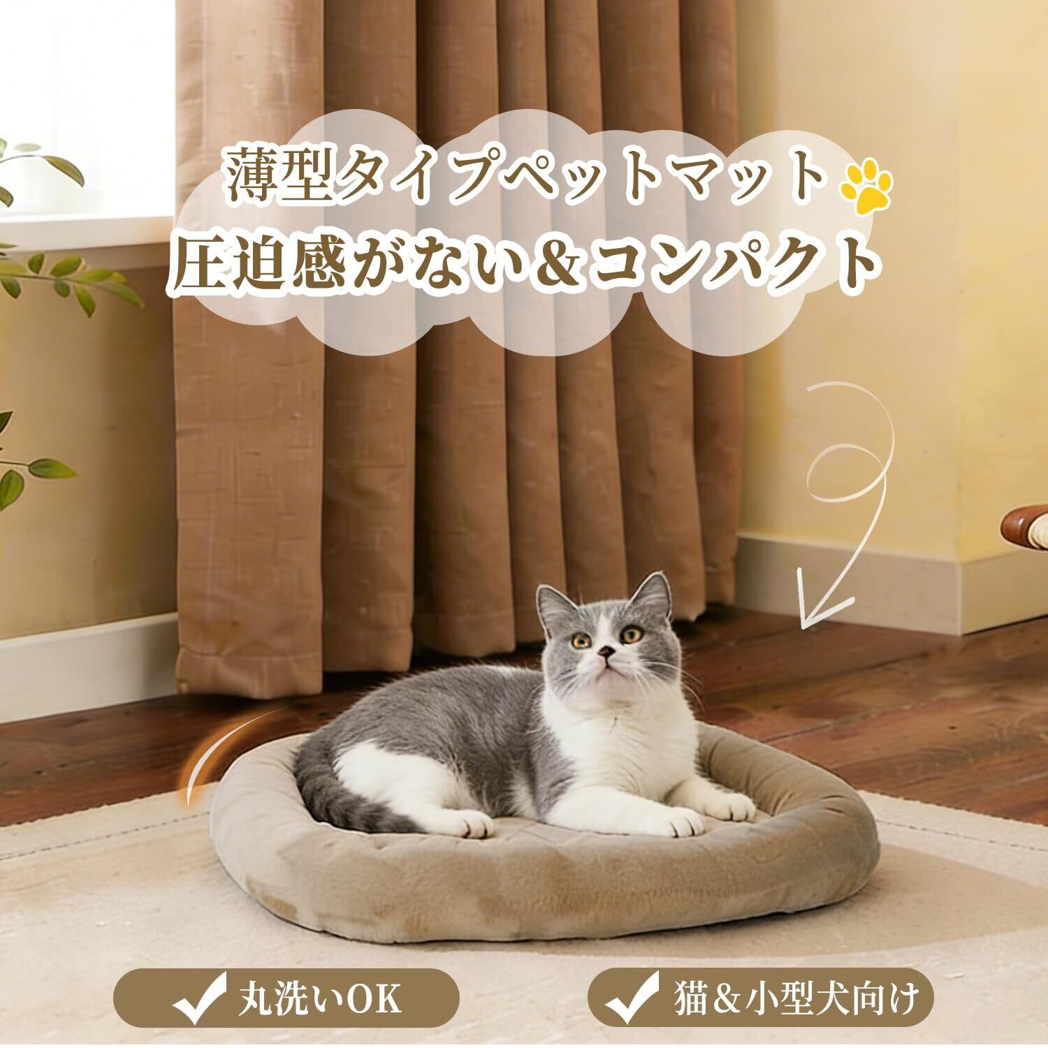 【滑り止め加工】裏面のノンスキッドボトムは、滑り止め機能があり置いた場所にそのまま滑ることなく置くことができます。【洗えるペットマット】手洗いOK、洗濯機洗いも可能です。いつでも清潔に保てることで、マットも快適に過ごすことができます。また、清潔を保つことで細菌やダニの増殖を抑えて、マットは皮膚疾患を予防できます。