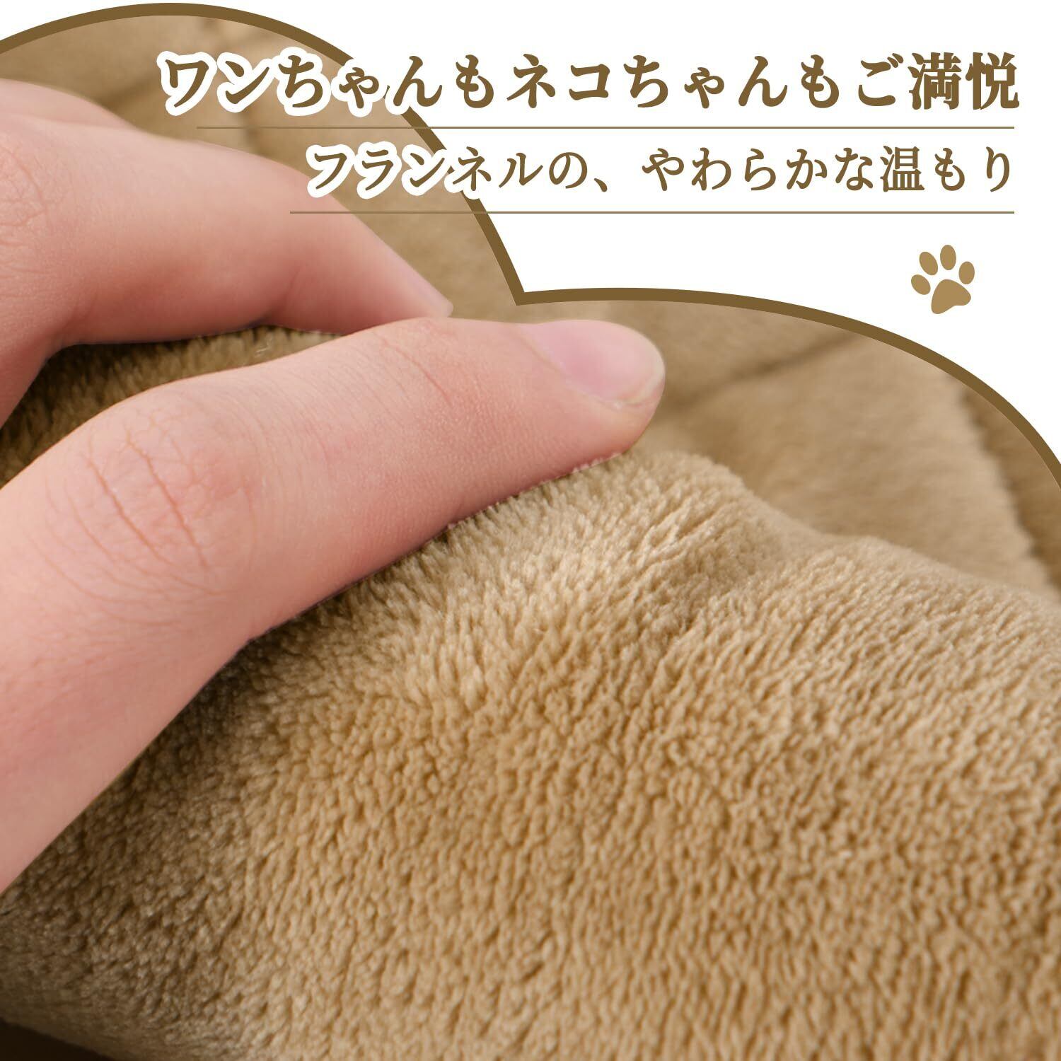 【密着感がある気持ちよい素材】表側は毛足が短くて密着したフランネル生地を採用。 肌触りの良さに定評があるマイクロファイバーの中でも、特に柔らかいのがこのフランネル繊維。 一般的なマイクロファイバーよりもっと柔らかくてなめらかな肌触り。 寝心地が抜群なので、ワンちゃんもネコちゃんも大喜び。