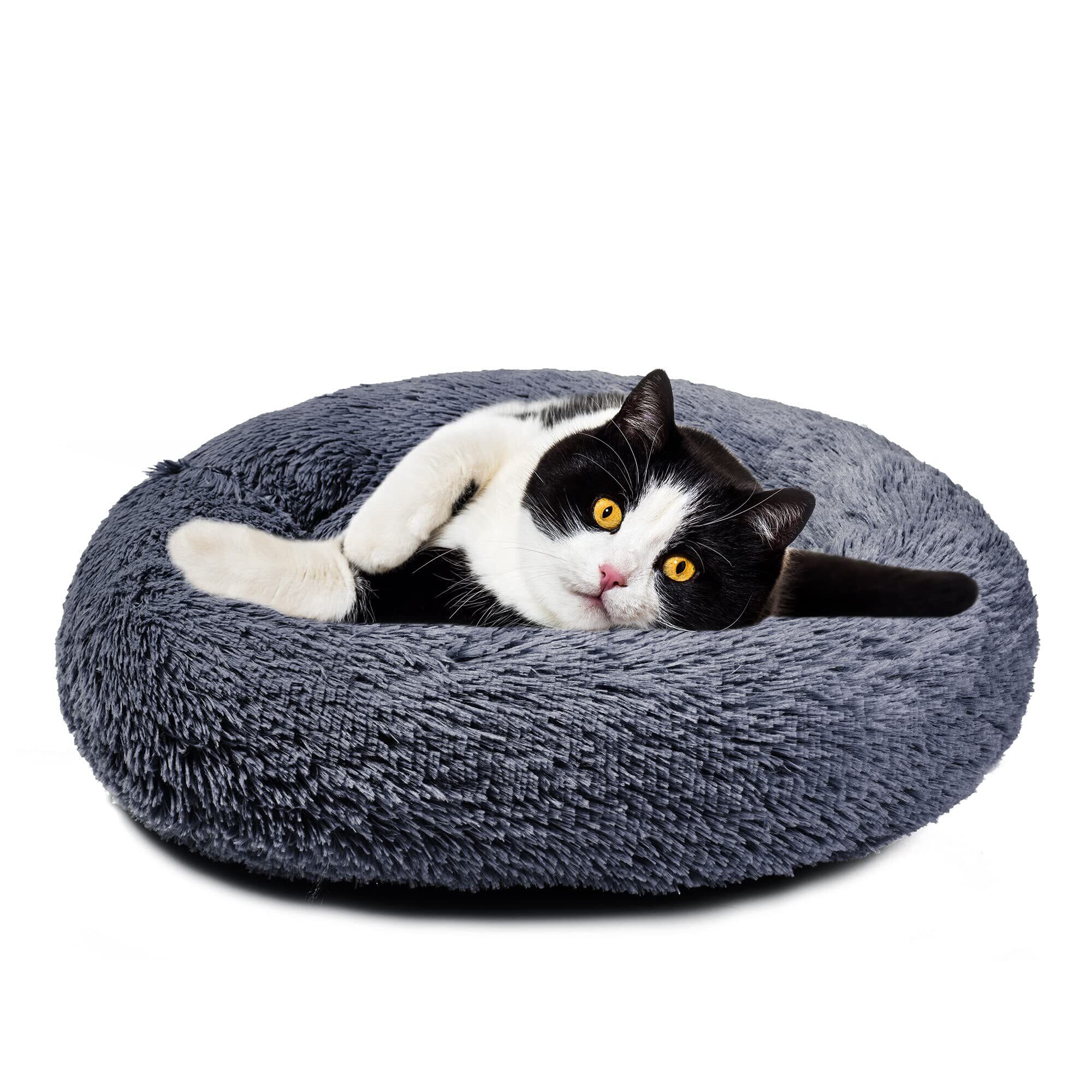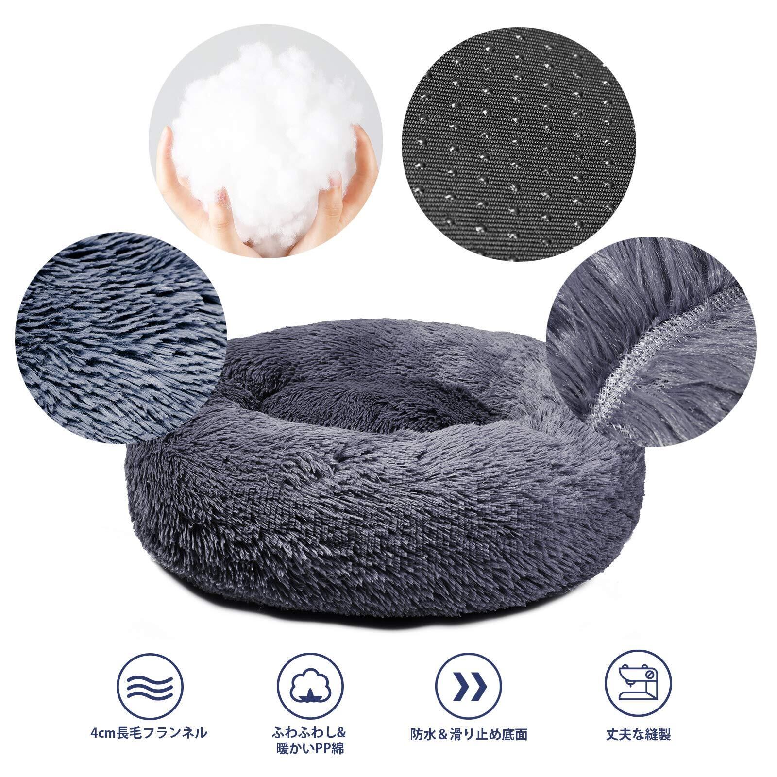 Aurako 50cm 犬ベッド 猫ベッド ふわふわ 丸型 クッション ドーナツペットベッド ぐっすり眠る 猫用 小型犬用 もこもこ 暖かい 滑り止め 防寒 寒さ対策 洗濯可能 子犬 猫用 サイズ選択可 ダークグレー