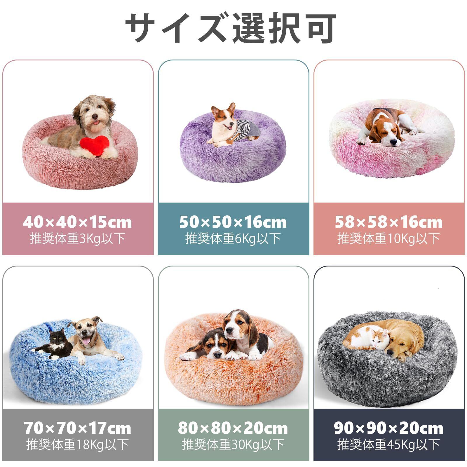 *ユニークな設計:丸型の設計です。ペットベッドの直径40cm/50cm/58cm/70cm/76cm/90cm、高さ約15~20cm。ふわふわして暖かい4cm長毛。