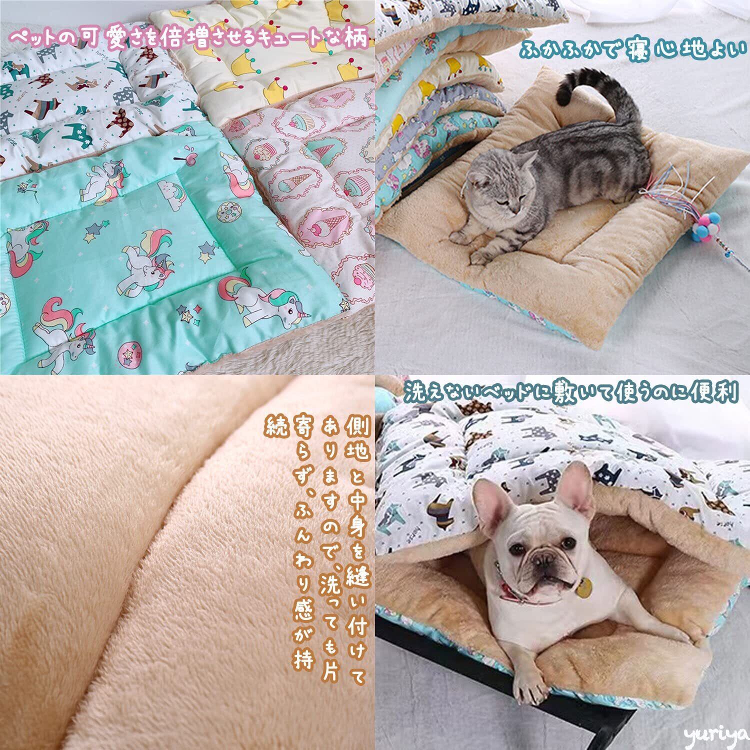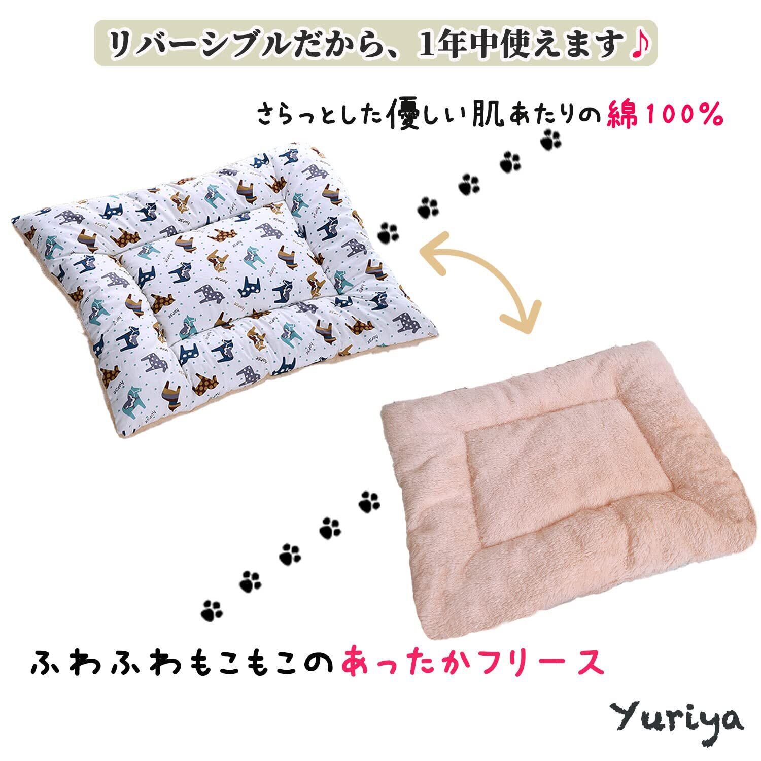 Yuriya ペット マット 猫 ベッド ふわふわ フリース 綿 リバーシブル ふかふか スクエア型 暖かい 柔らかい 洗える 犬 ペット クッション 布団 防寒 寒さ対策 通年 クラウン 32*42