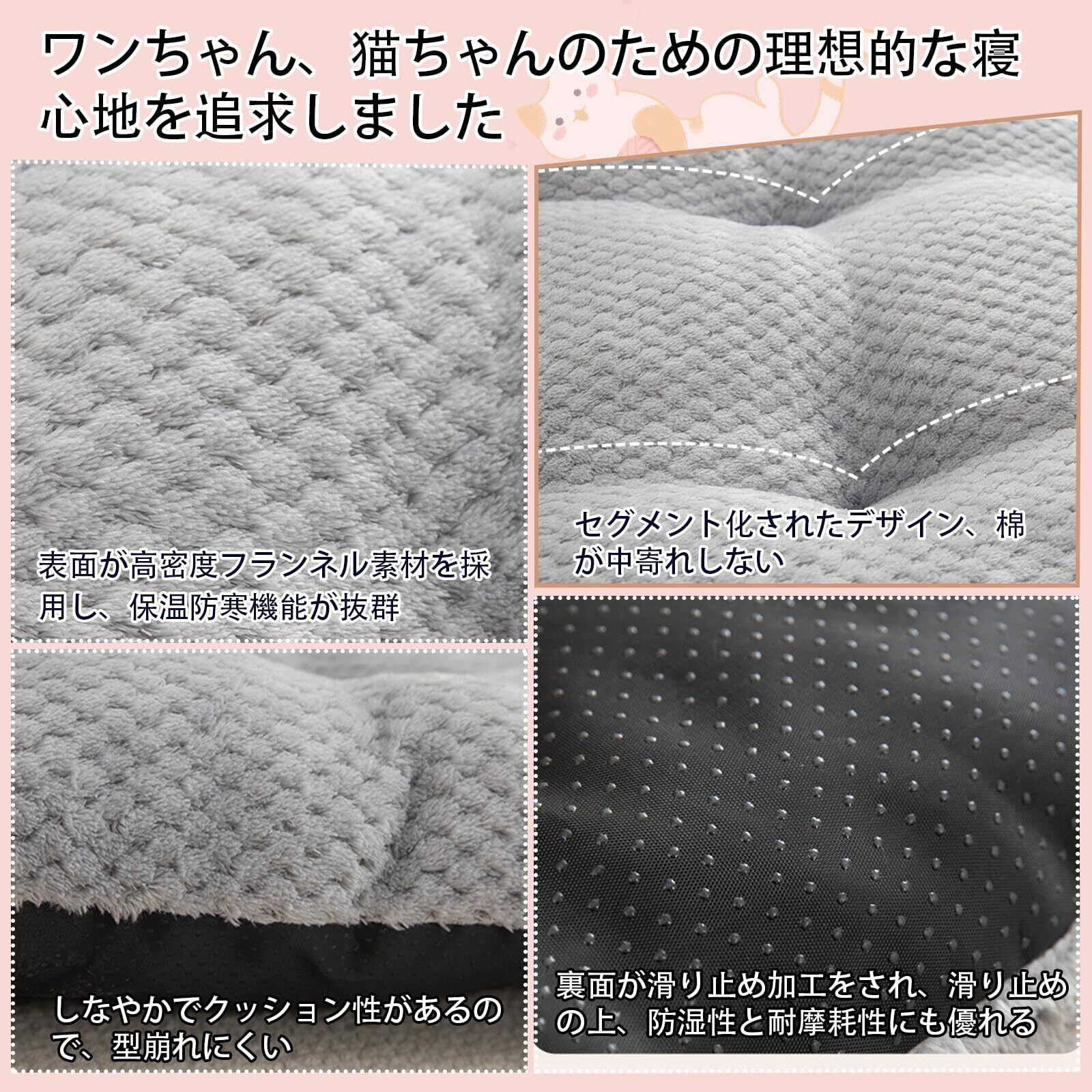 【密着感がある暖かい素材】このペットクッションの表面はフランネル素材を採用しており、ぽかぽかで肌ざわりよくてあったかい、中には高反発のPP綿をたっぷり充填し、軽くて滑らかな心地よさです。寒い冬にも熱量を失わなくなって、ペットの体温を維持することができます。もこもこなので、冬寒さ対策として大人気。愛犬愛猫がぐっすり眠れます。(2025秋からの改良版では、綿の充填量を増量しました。SとMサイズは100g、LとXLサイズは200g増量しました!写真とビデオはすべて実際の製品を撮影したものです。是非お試してください。)