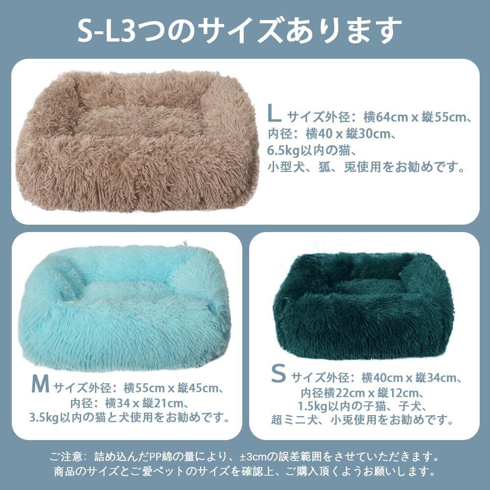2.猫と小型犬通用のペットクッション。S-L3つのサイズあります。Sサイズ外径:横40cmx縦34cm、内径横22cmx縦12cm、1.5kg以内の子猫、子犬、超ミニ犬、小兎使用をお勧めです。Mサイズ外径:横55cmx縦45cm、内径:横34x縦21cm、3.5kg以内の猫と犬使用をお勧めです。Lサイズ外径:横64cmx縦55cm、内径:横40x縦30cm、6.5kg以内の猫、小型犬、狐、兎使用をお勧めです。ご注意:詰め込んだPP綿の量により、±3cmの誤差範囲をさせていただきます。商品のサイズとご愛ペットのサイズを確認上、ご購入頂くようお願いします。