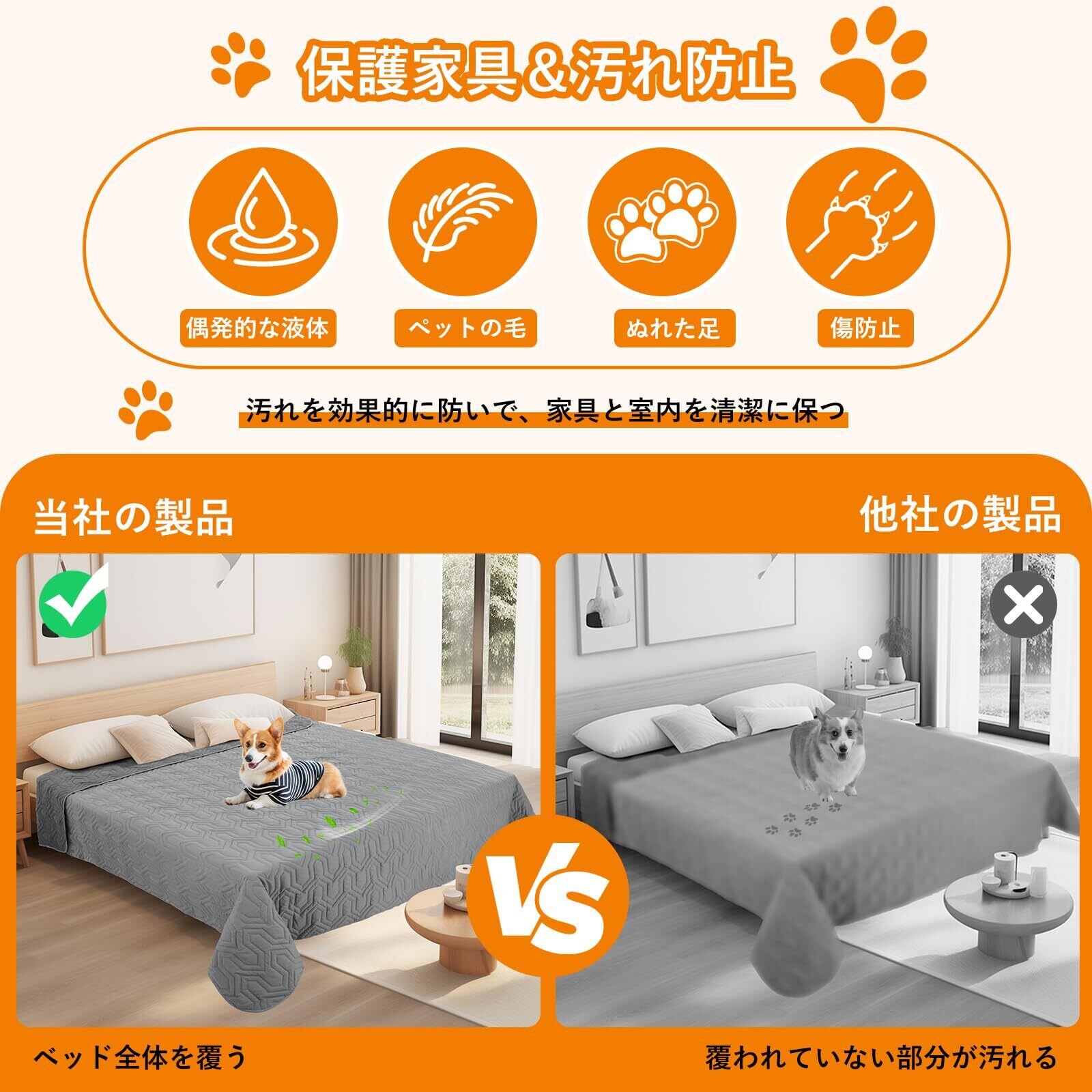 【保護家具&汚れ防止】:防水カバーベッドはさまざまな家具に使用でき、ペットの引っかき傷、唾液、食べ物の粒、表面の汚れなどから守ります。また、日常の摩耗から家具を保護します。シングルベッド、ダブルベッド、ソファ、床など、さまざまな家具を全面的に保護しカバーします。これにより、家具の状態を良好に保つことができます。多用途の防水シートであり、大きなサイズなので多くの用途に使用できます。