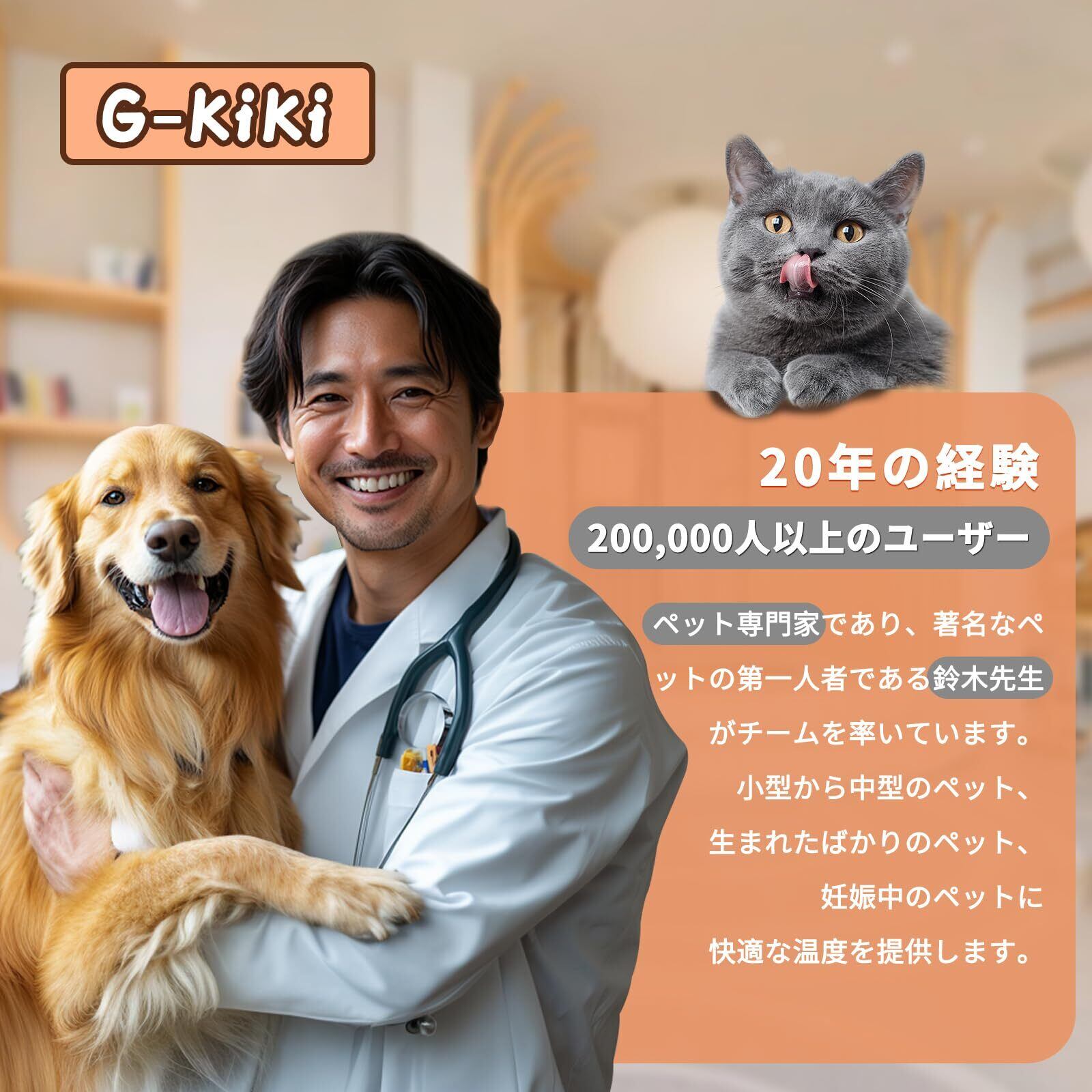 【ペット専門家監修・PSE認証取得・18か月】G-KiKiホットカーペットは、20年以上のペット経験を持つ鈴木専門家が直接監修し、PSE認証を取得しているため安心してご使用いただけます。世界累計販売数は30万台を突破。サイズは45×45cm、70×45cm、60×90cmの3種類をご用意。標準モデル(13段階タイマー搭載のベーシックタイプ)、独自開発モデル(自社独自の技術による14段階タイマー搭載の進化版)、業界ハツリモコン付きモデル(14段階タイマー+リモコン操作可能の特別モデル)の3タイプからお選びいただけます。小型・中型・大型ペットはもちろん、生まれたばかりのペットや病中・回復期のペットにも最適です。寒い季節に暖かなぬくもりを与え、愛犬・愛猫の健康を守ります。また、ご自身のペット用としてだけでなく、大切なペットを飼っているご家族やご友人へのプレゼントにも最適です。ご購入日より18か月間の付きで、初期不良・故障・破損・付属品の不足などが発生した場合は、国内の専門アフターサービスチームが24時間以内にメールまたはお電話で解決策をご案内いたします。