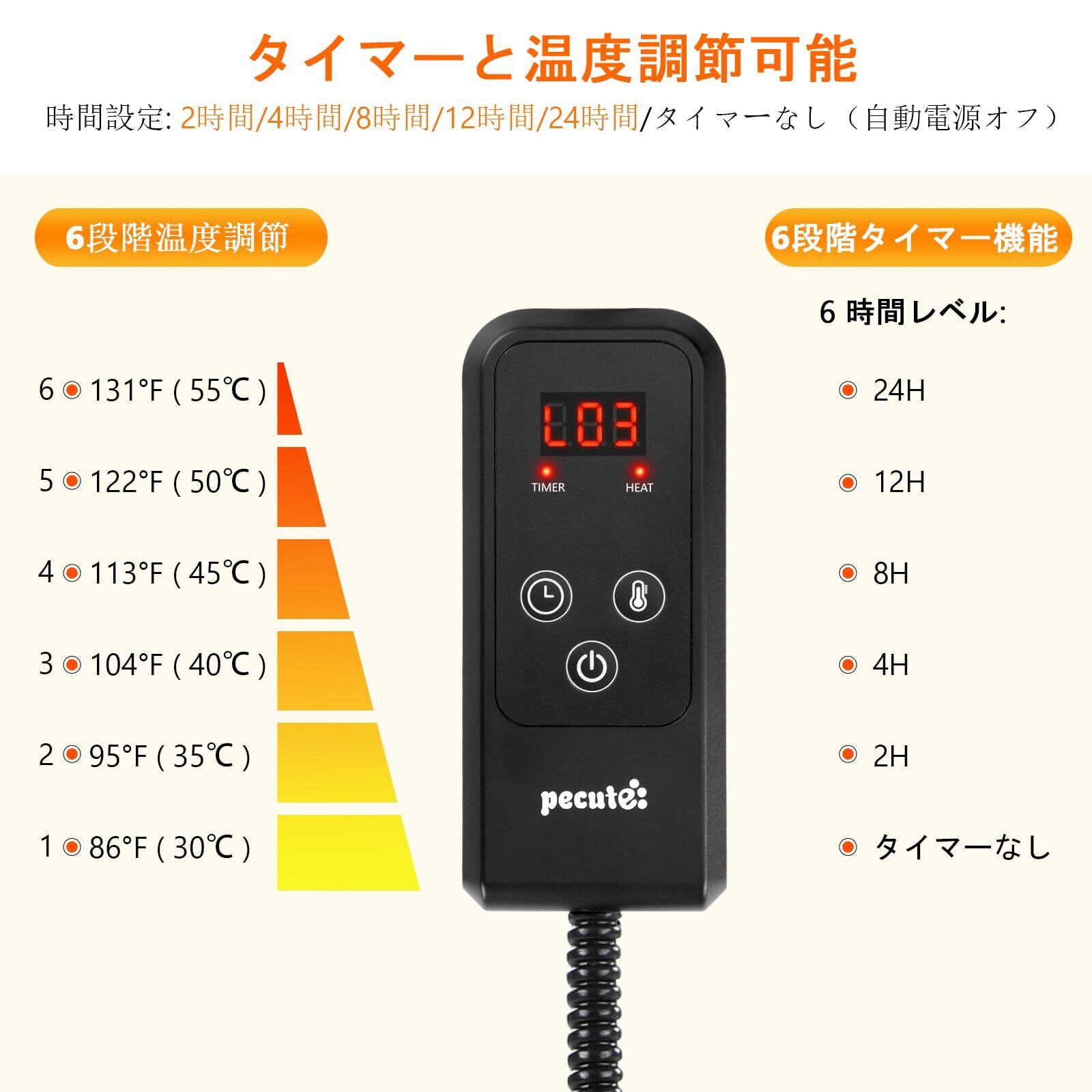 Pecute ペット用ホットカーペット猫用ホットカーペット猫 ヒーター 猫 犬 ホットマット 6段温度調節 6段タイマー機能 猫 犬 小動物用 ヒーターマット ペットカーペット 厚手 ペット用暖房器具 噛み付き防止 感電防止 過熱保護 カバー1枚付き Lサイズ 70*40cm