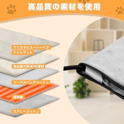 【柔らかい生地、お手入れが簡単】:ペットヒーターの内側は防水PVCで作られており、IP67等級に準拠しているため、汚れた場合は濡れたタオルで内側を拭くだけで大丈夫です。 2つの蓋が付属しており、外側のクリスタルジャケットは熱を閉じ込めて暖かさを保つ非常に柔らかい素材で作られており、取り外して洗濯機で洗えます。 お手入れも簡単で清潔に保てます。