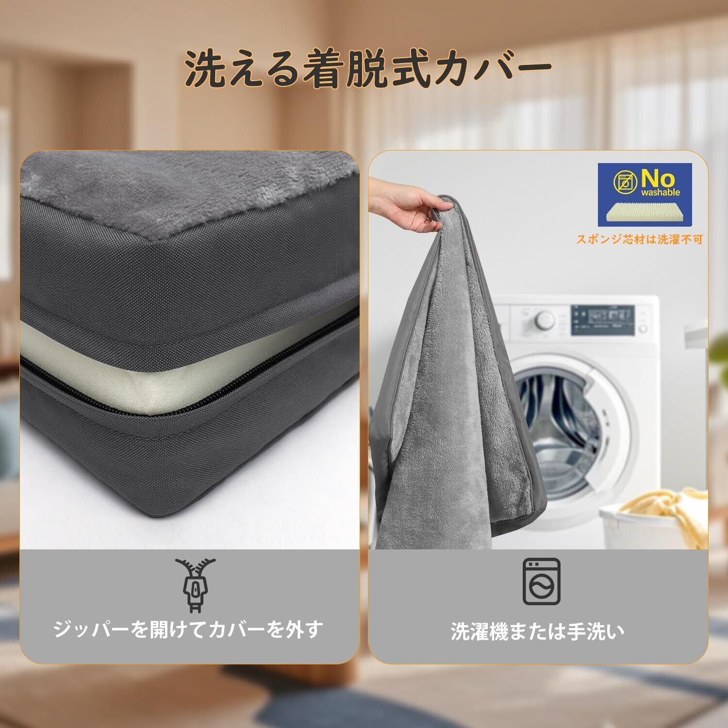 【防水・撥水機能で衛生的】カバーには100%防水のTPUライナーを内蔵し、尿や唾液の浸透をブロック。犬 カーペット 防水やペットボトルカバーのような防水性能で、内部のスポンジを守ります。サイドも防水加工され、清潔な休息スペースを提供します。