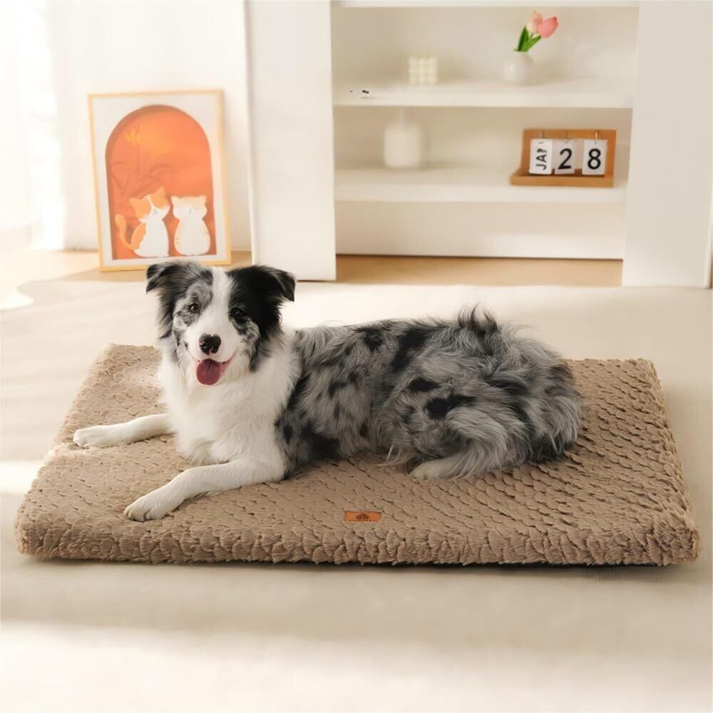 GURILAN 防湿ペットマット犬用マット四季通用ペットマット、取り外して洗えるペットマット夏用ベッド高弾性波形スポンジ使用!防湿滑り止め付きの快適ペットマット (ブラウン, S(長さ48cm x 幅30cm x 厚さ5cm))