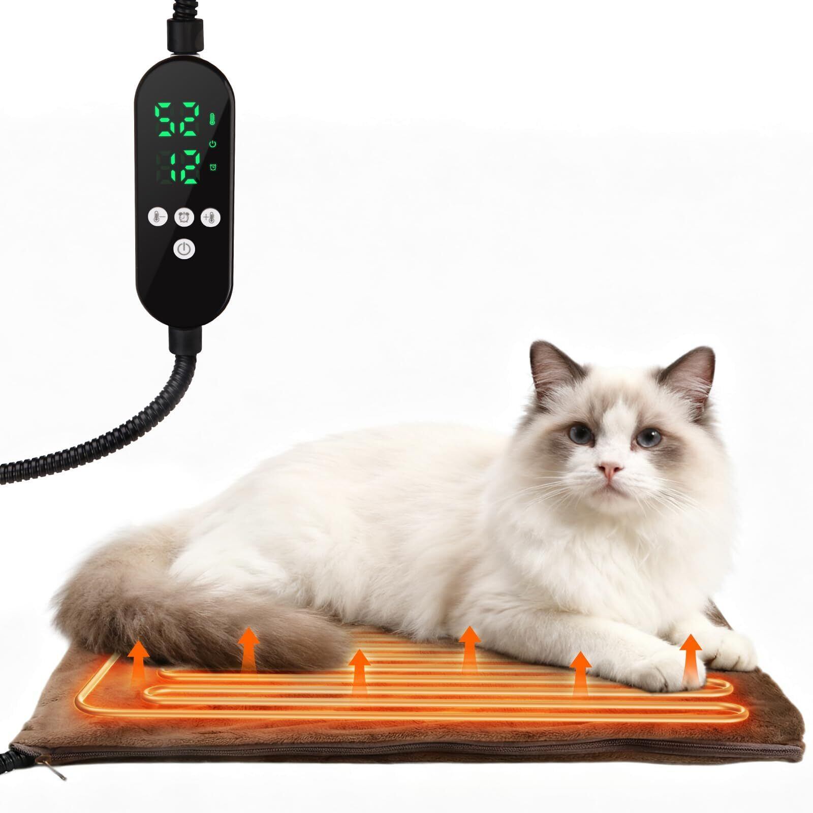 Zaahir ペット用ホットカーペット 【2025年新開発モデル・PSE認証済み】 30~60℃温度調節 13段階タイマー 1~12H 新搭載24時間タイマー設定 寒さ対策 防水 過熱保護 NTC恒温センサー 省エネ 噛み癖対策 金属スパイラル管 暖房 小型犬 大型犬 猫 小動物 ホットヒーター カバーなしで使用可 Sサイズ (45*45cm) ブラウン