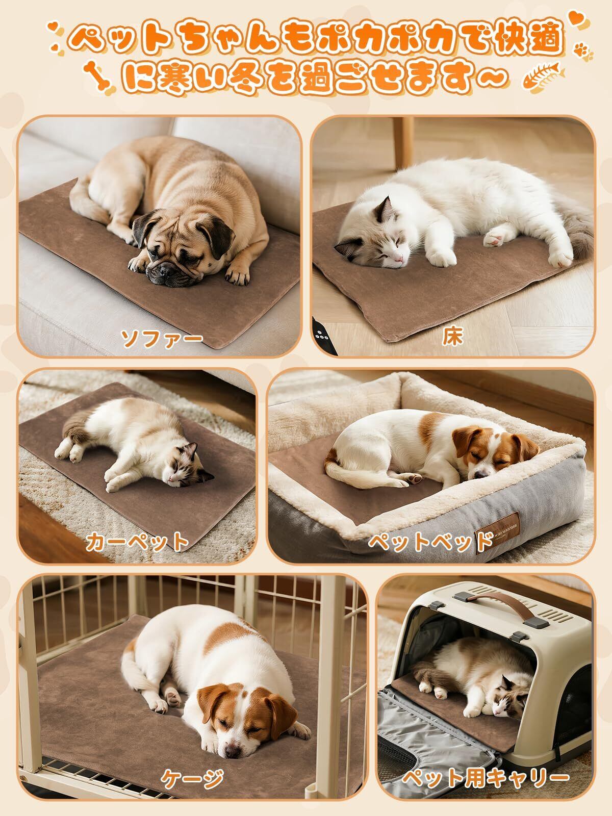 【サイズ展開・冬対策】大小さまざまなペットに対応、3種類のサイズをラインナップし、ペットの大きさに合わせて選べます、S(45*45cm)、M(45*70cm)、L(60*90㎝)3種類のサイズを提供する、各種の体型のペットに適合します。用途をすすめて:小動物(犬と猫とウサギなど)から体長まで90㎝の大型ペットを超えなくて、各種ペットの需要を満足します。ホットカーペットについてご質問や使い方がわからない場合は、お気軽にお問い合わせください。迅速に対応いたします。さらに、商品に不具合や使用方法が不明な場合は、必ずご連絡ください。24時間内迅速に問題を解決させていただきます。また、購入後12ヶ月のが付いているため、安心してご購入いただけます。