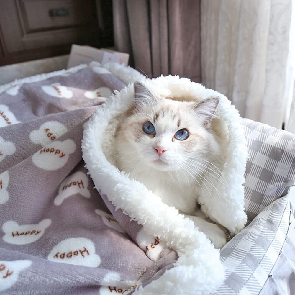 ペット用 ブランケット 毛布 犬猫用 -HIMATI タオル マット 暖かい ふわふわ 防寒 保温 洗える 可愛い柄 四季適用 ベッドカバー -Gray-S
