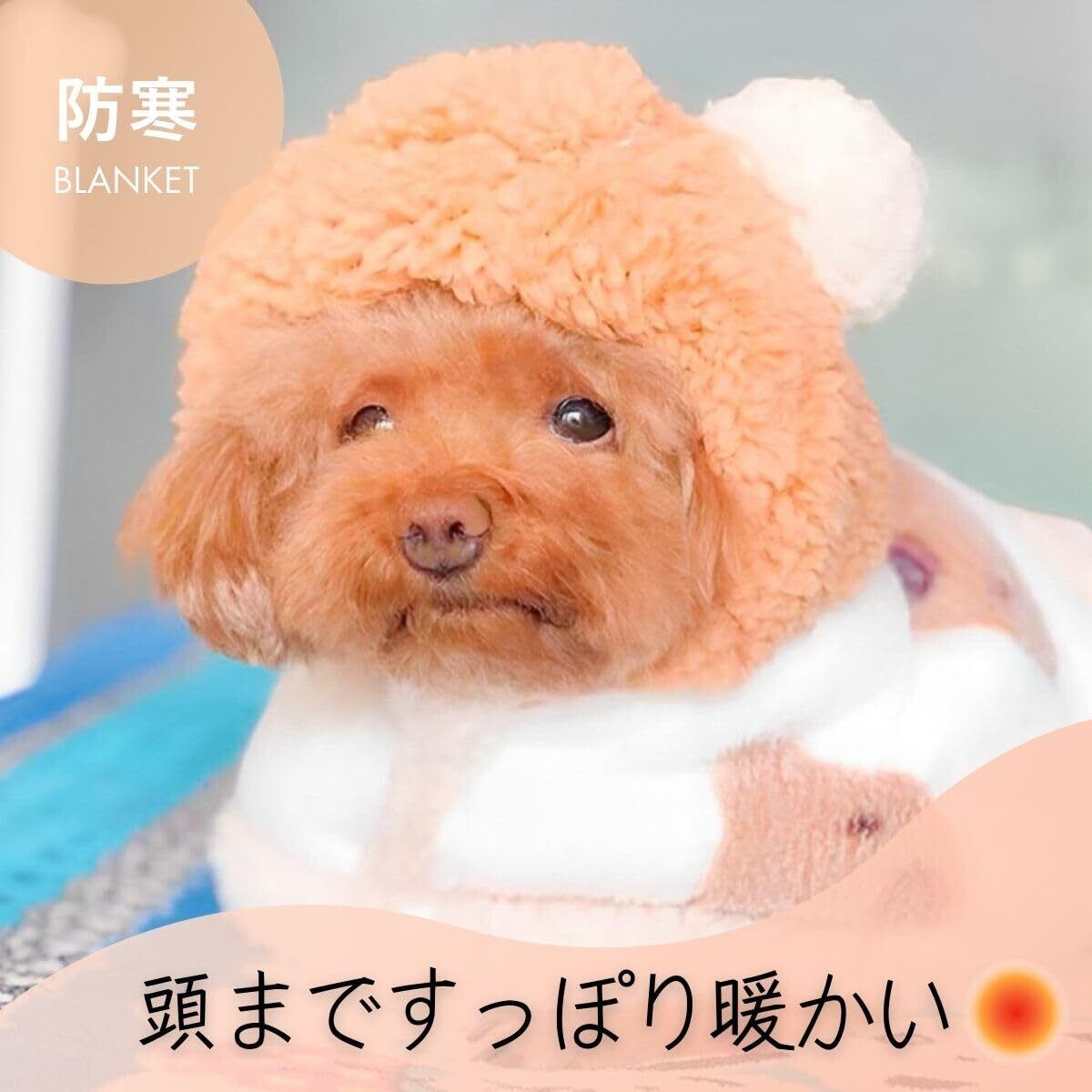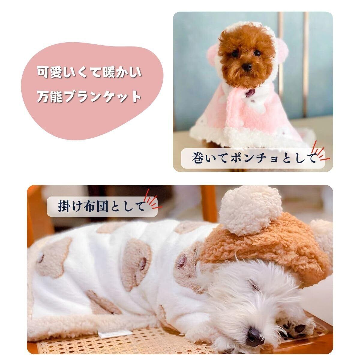 【ポンチョ風ブランケット】秋冬~春先などの寒い日にお使いいただける犬用のブランケットです。ワンちゃんのポンチョやマントみたいにお使い頂けます。寒い日の防寒着として可愛く着れる犬の服です。ふかふかのブランケットでワンちゃん猫ちゃんなどのペットを優しく包み込みます。