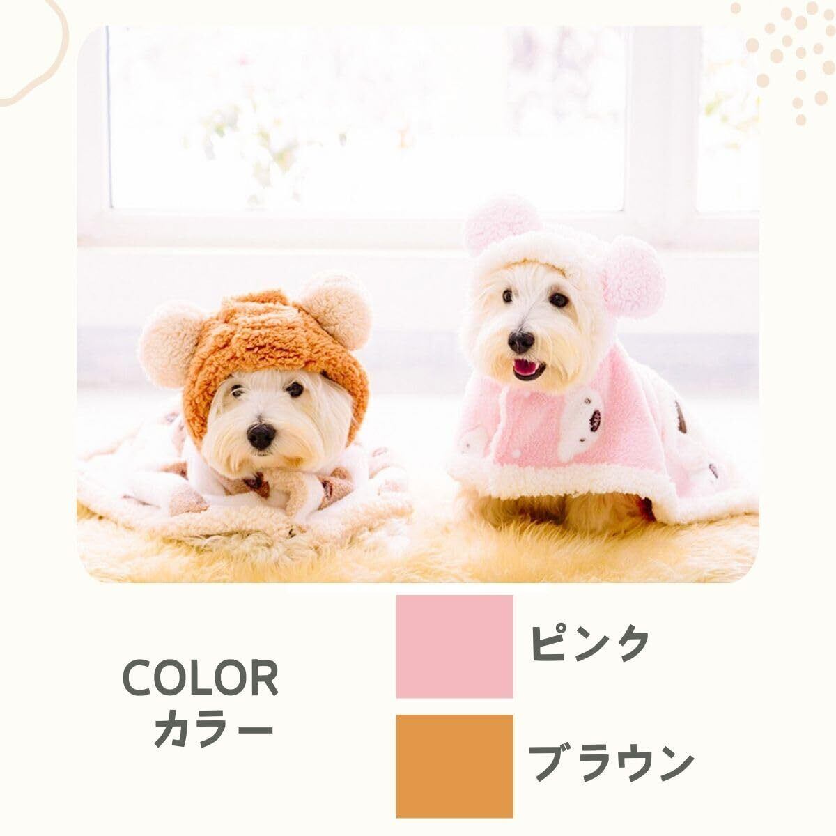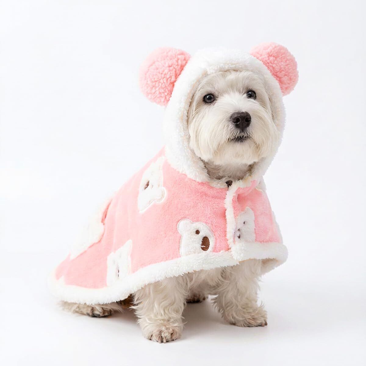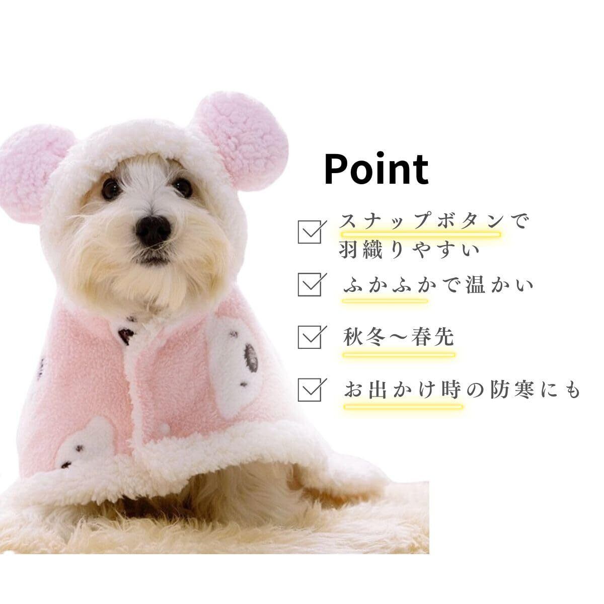 PetGround 犬 服 くまちゃんブランケット ポンチョ 可愛い 犬服 春 秋 冬 防寒 ペット 毛布 ふわふわ 厚手 暖かい 小型犬 中型犬 猫 男の子 女の子 (M, ピンク)