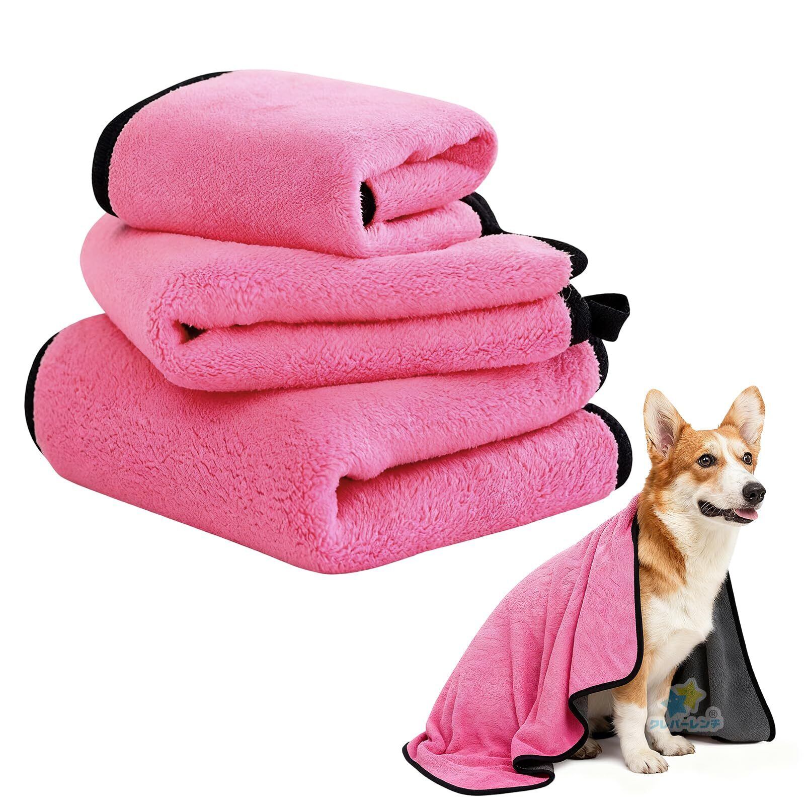 ペット用 タオル 超吸水 給水 速乾 厚手 超ソフト 大判 マイクロファイバー 柔らか 犬用タオル 犬猫兼用 小中大型犬 (ピンク, M)