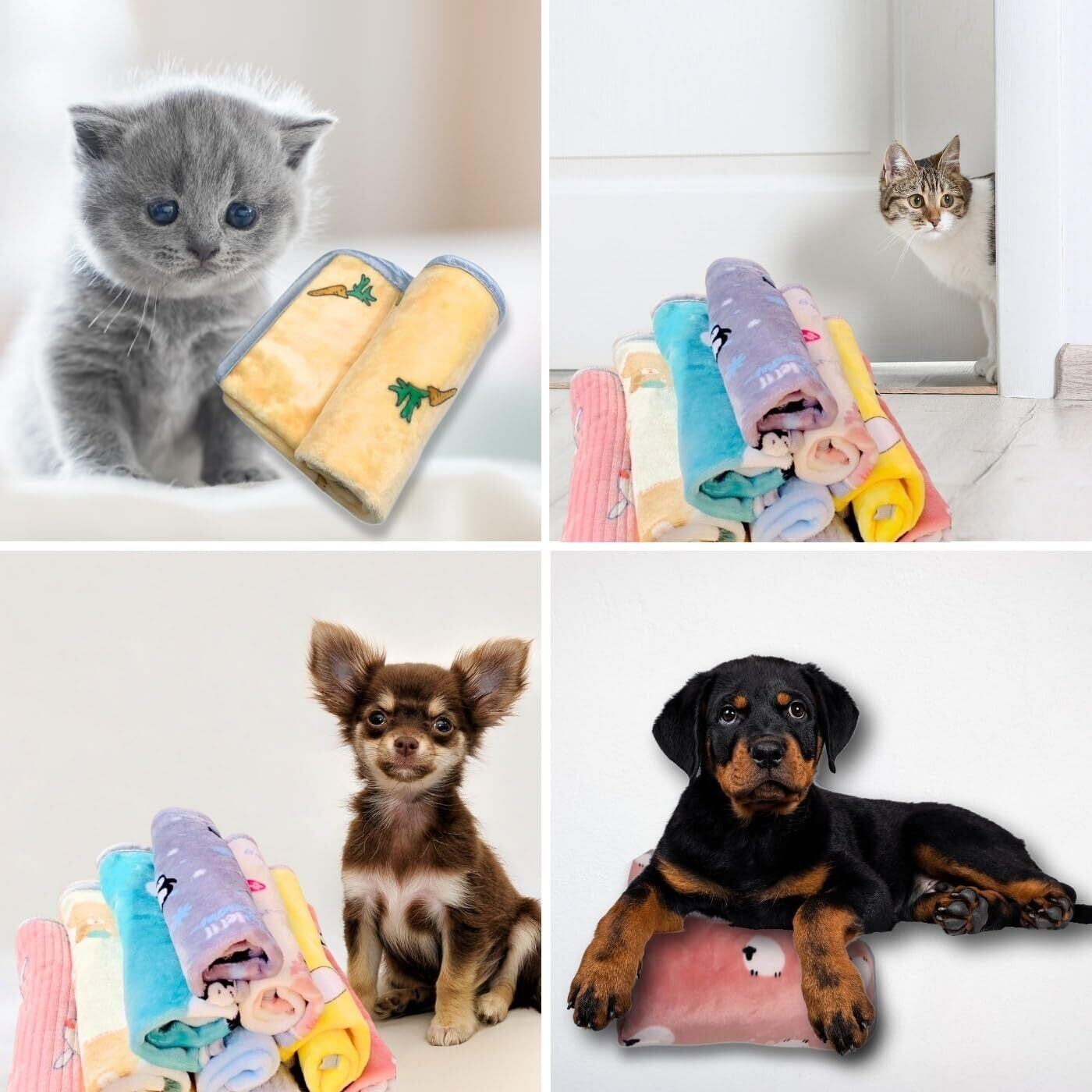 ふかふか ペットブランケット 60✕40cm 犬 猫 cat dog うさぎ 小動物 暖かい ペット用 子犬 子猫 かわいい 寝具 寝心地 やわらかい 2枚セット (くまイチゴ柄とにんじん柄)