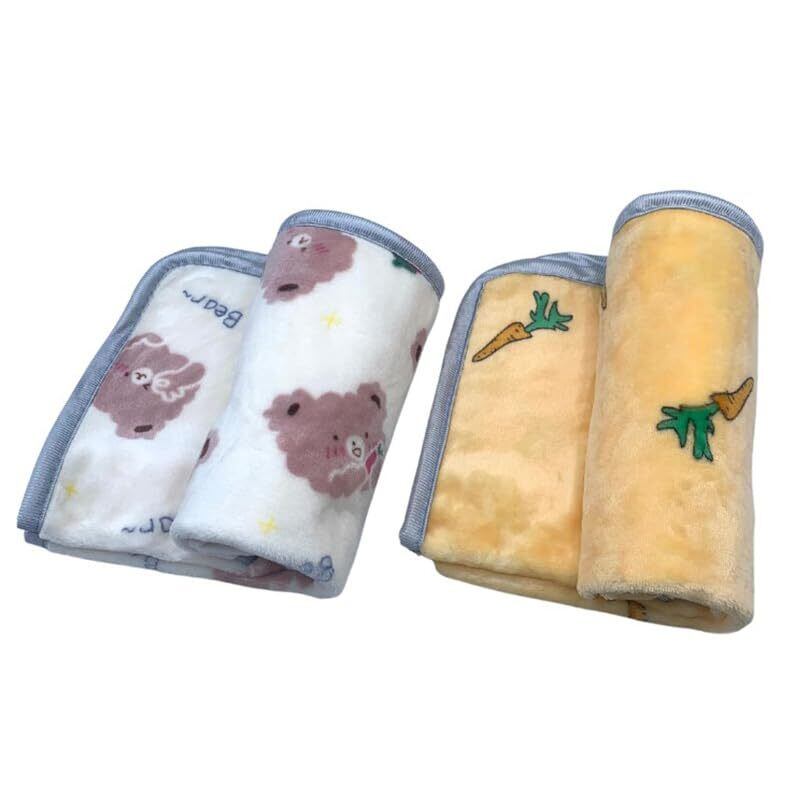愛犬・愛猫も大満足!かわいい柄の厚手ブランケット 60✕40cm 2枚セット くまイチゴ柄とにんじん柄のかわいらしい柄のセットです。 このペットブランケットは、子犬や子猫、小型犬にぴったりのデザイン。 柔らかくて心地よい素材で作られており、寒い日でもペットが快適に過ごせるようにという思いを込めて。 ペットのリラックスタイムにも活躍。 洗濯機で洗えるためお手入れも簡単! ペットとの日常に、ぬくもりと安心をプラスしましょう。