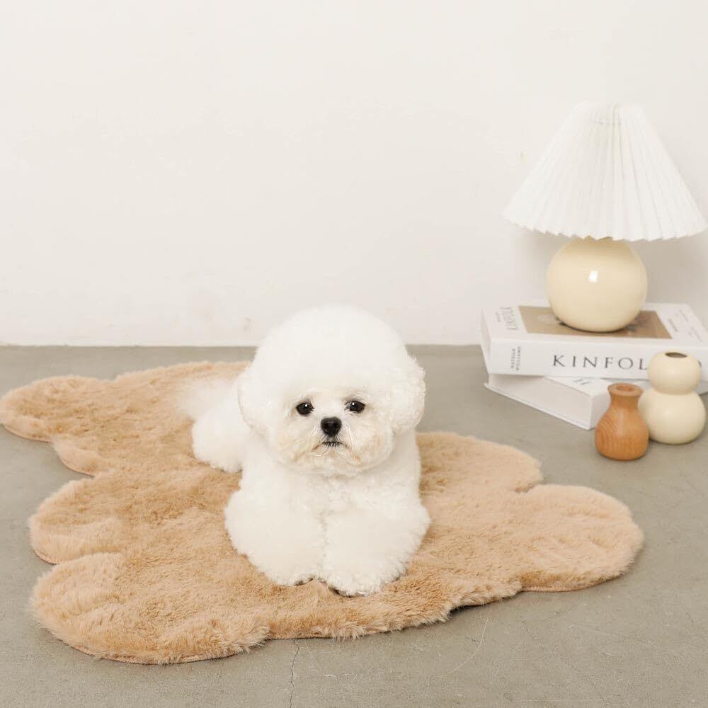 【肌触りの良いくまさんの形をしたフロアマット】くまさんの形をしたフロアマット。肌ざわりの良い毛並みのあるファーを使用。 おうちの玄関先や愛犬ちゃん用マットにもお使いいただける可愛らしいマットです。