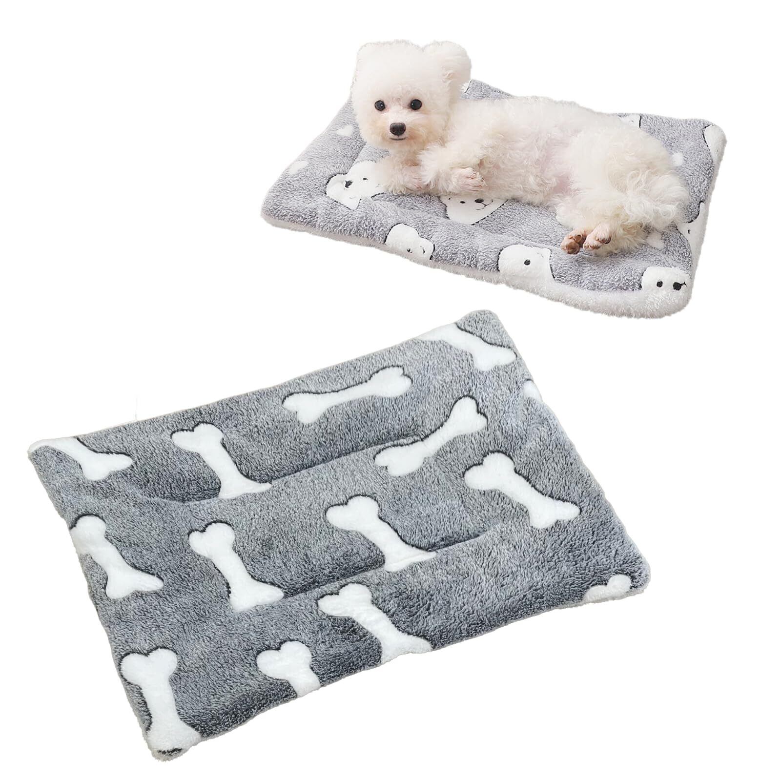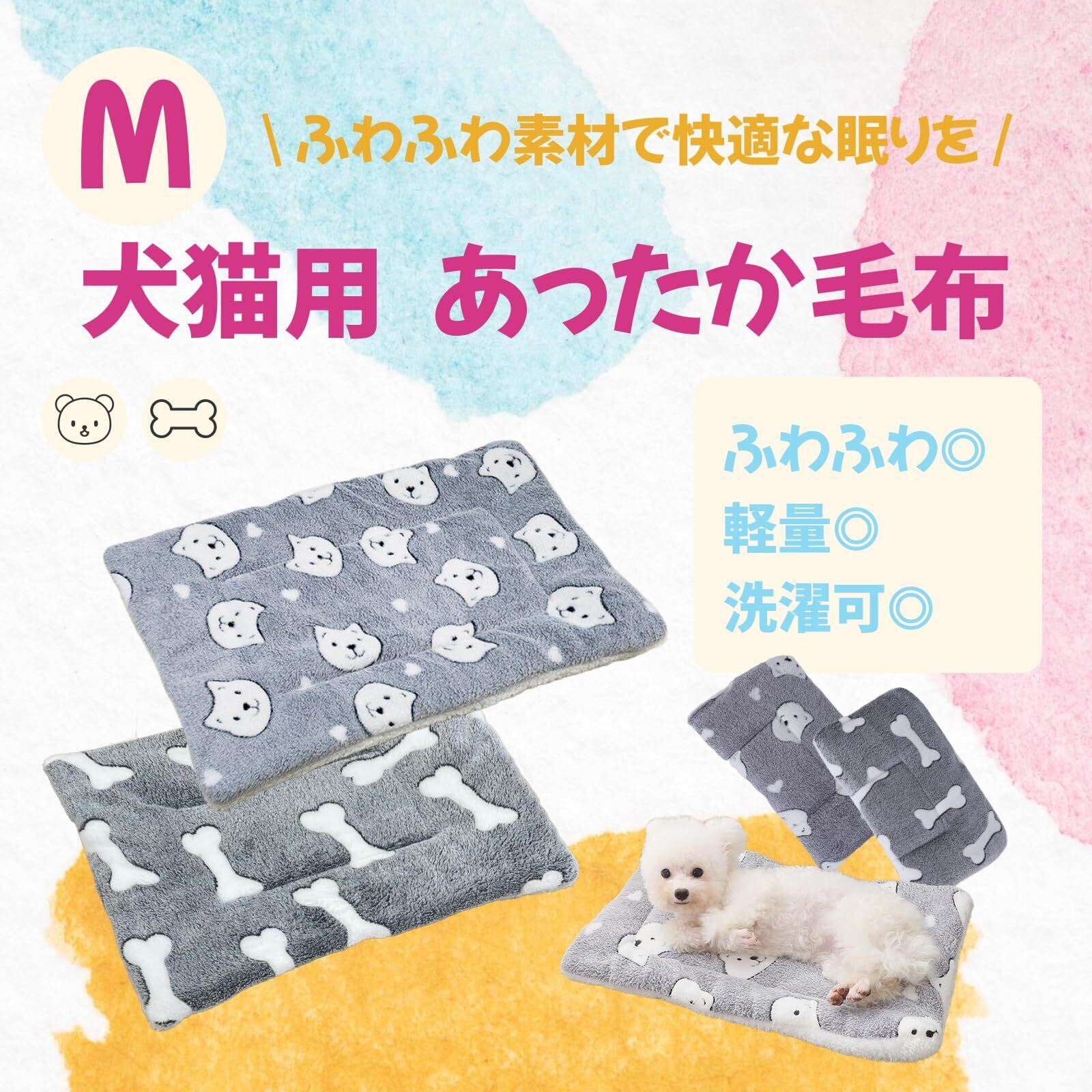SAKURAN 犬猫用毛布 ペット ブランケット フランネル 洗える 冬 秋冬 防寒 あったか 柔らか 快適 ふわふわ タオル かわいい マット (ほね, M)