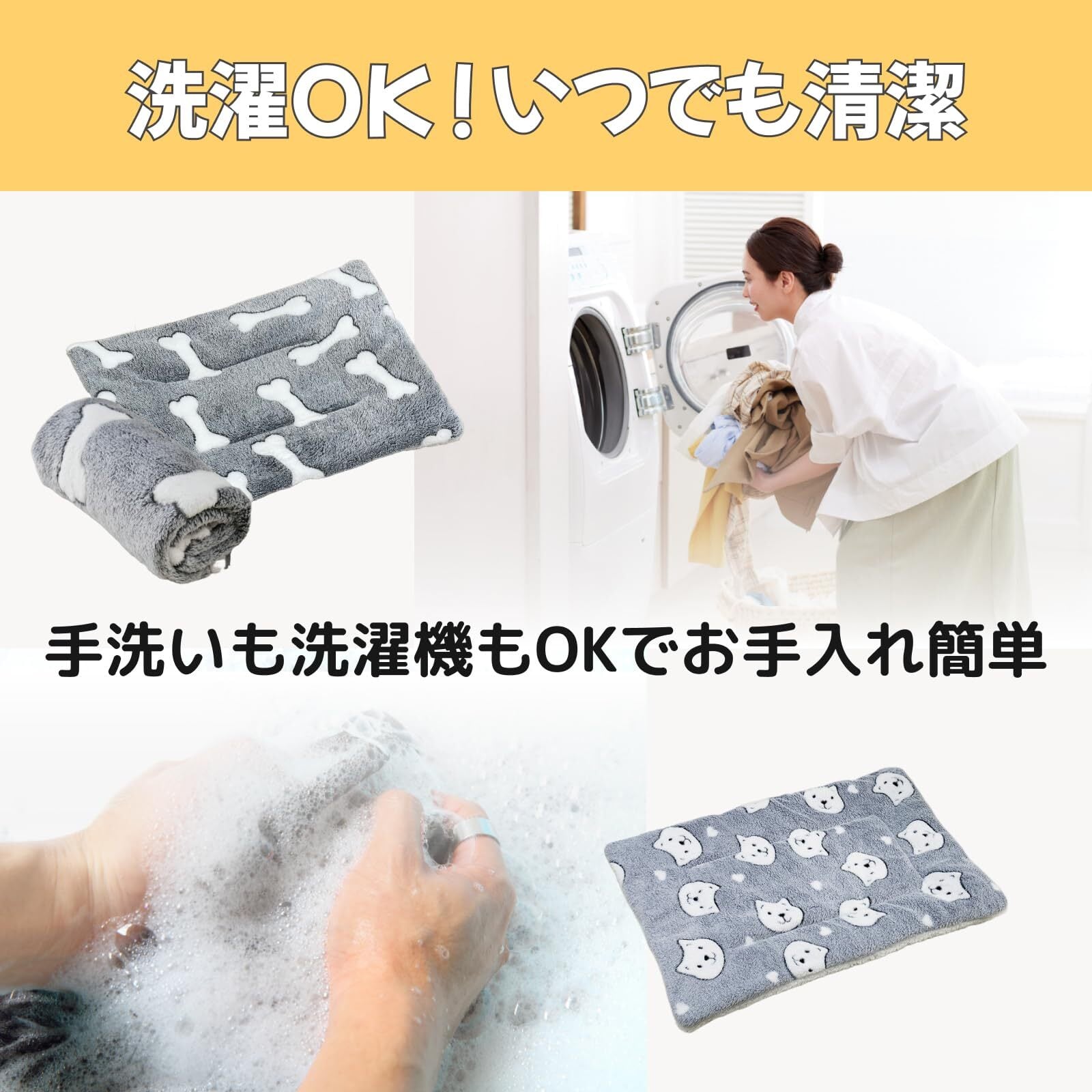 柔らかく肌触りの良いフランネル素材を使用しており、ペットに優しい快適な使い心地です。秋冬の防寒対策はもちろん、夏場のエアコン対策にも使えるオールシーズン仕様。ブランケットとしてだけでなく、タオルやマット、掛け布としても使える多機能設計です。手洗い・洗濯機どちらにも対応しており、軽量で乾きやすく日常的に清潔を保てます。愛らしいくま柄・骨柄デザインで見た目も可愛く、SNS映えする撮影アイテムとしてもおすすめです。