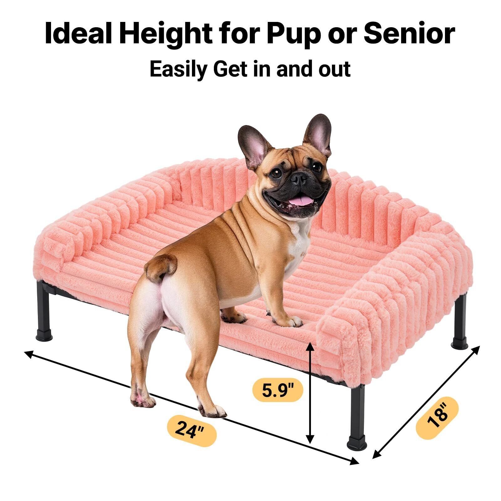 高床式犬用ソファベッド(小型):ふわふわのぬいぐるみ風ボルスターと整形外科用マットレス付きの高床式犬用ベッドフレーム。サイズ60×45×10cm。猫、チワワ、ポメラニアン、トイプードル、フレンチブルドッグ、ダックスフントなどに最適