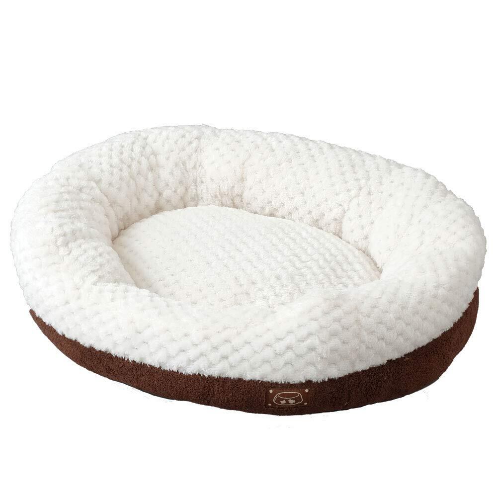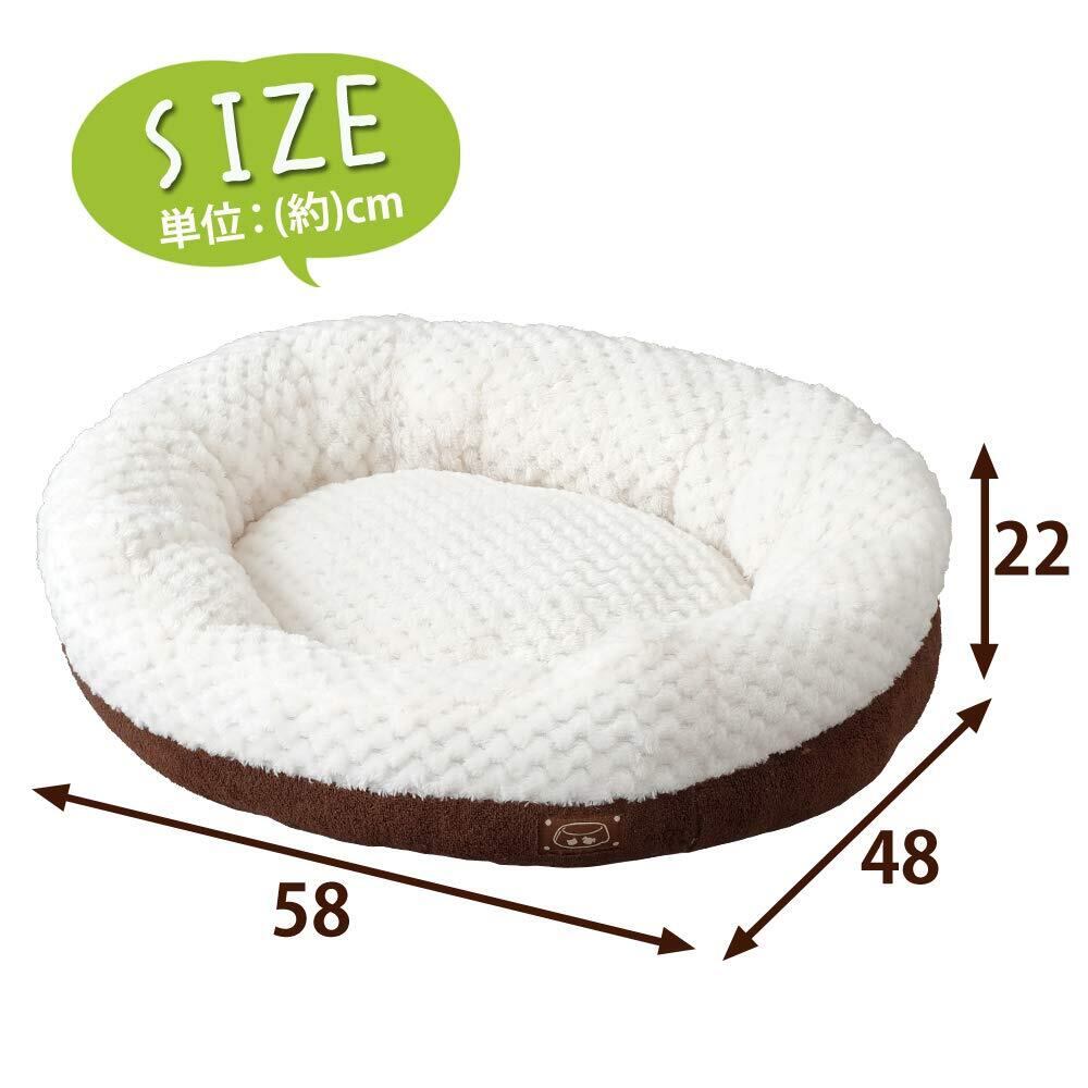 【商品説明】:ふんわりクッションが気持ちいい、あったか素材の秋冬仕様のペット用ベッドです。 シンプルなデザインがお部屋にマッチします。 おうちの愛犬、愛猫も快適な寝心地にうっとりすること間違いなし。 丸まりやすいオーバル型の寝心地の良いベッド。