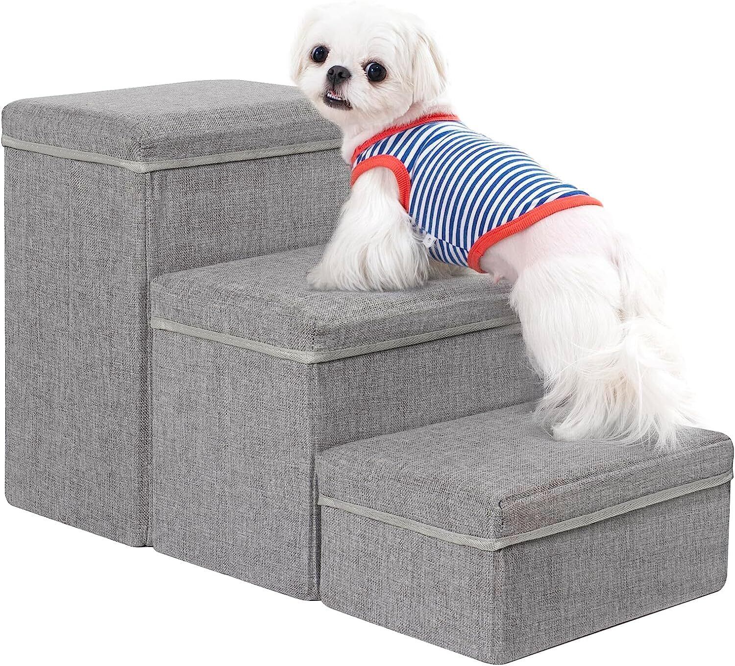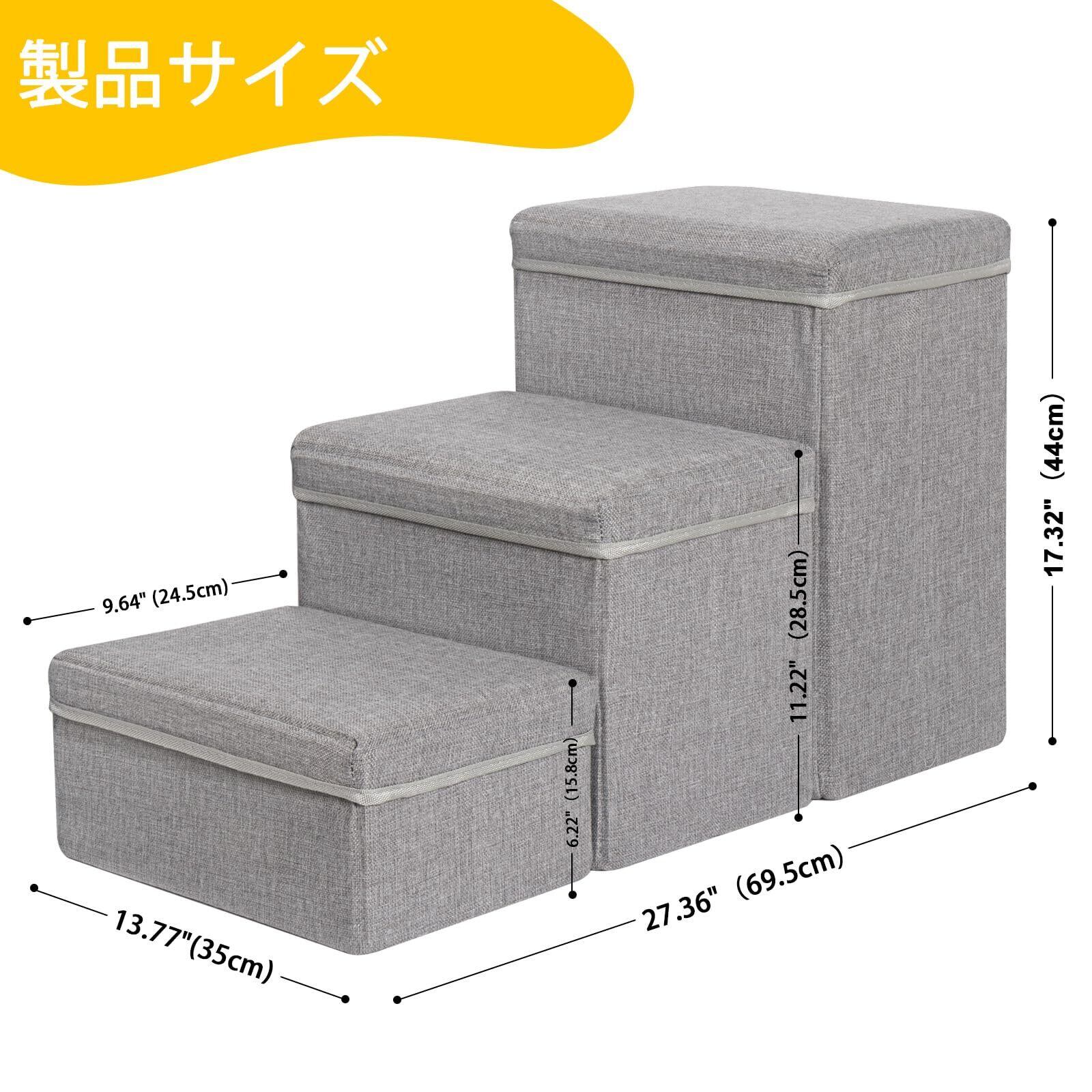 Uross 犬用階段 収納付き 3段 小型犬用 中型犬用 大型犬用 ペット用階段 ベッド用 耐荷重約30kg 老犬 猫用 犬 子犬用 階段 ソファー用ステップ (ライトグレー)