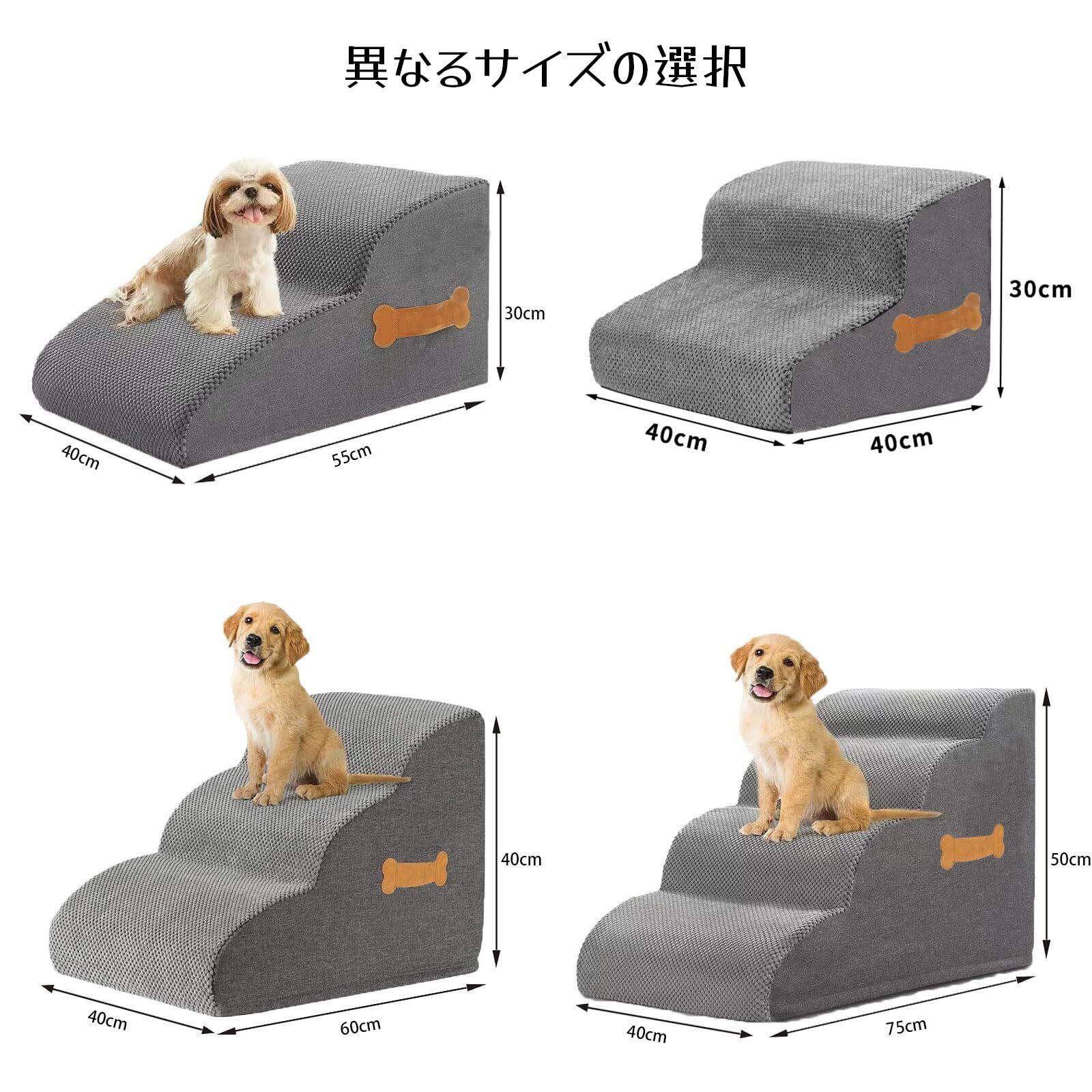 【ユニークなデザイン 犬 ステップ】純粋な泡の30D密度により、クッション性もリバンド性もよく、衝撃を減らせる上に凹むことはありません。この階段はペットが上を歩くときにより安定します。犬用ベッドステップはペットが移動する際に強力なサポートを提供します。低角度斜面設計で関節を保護します。