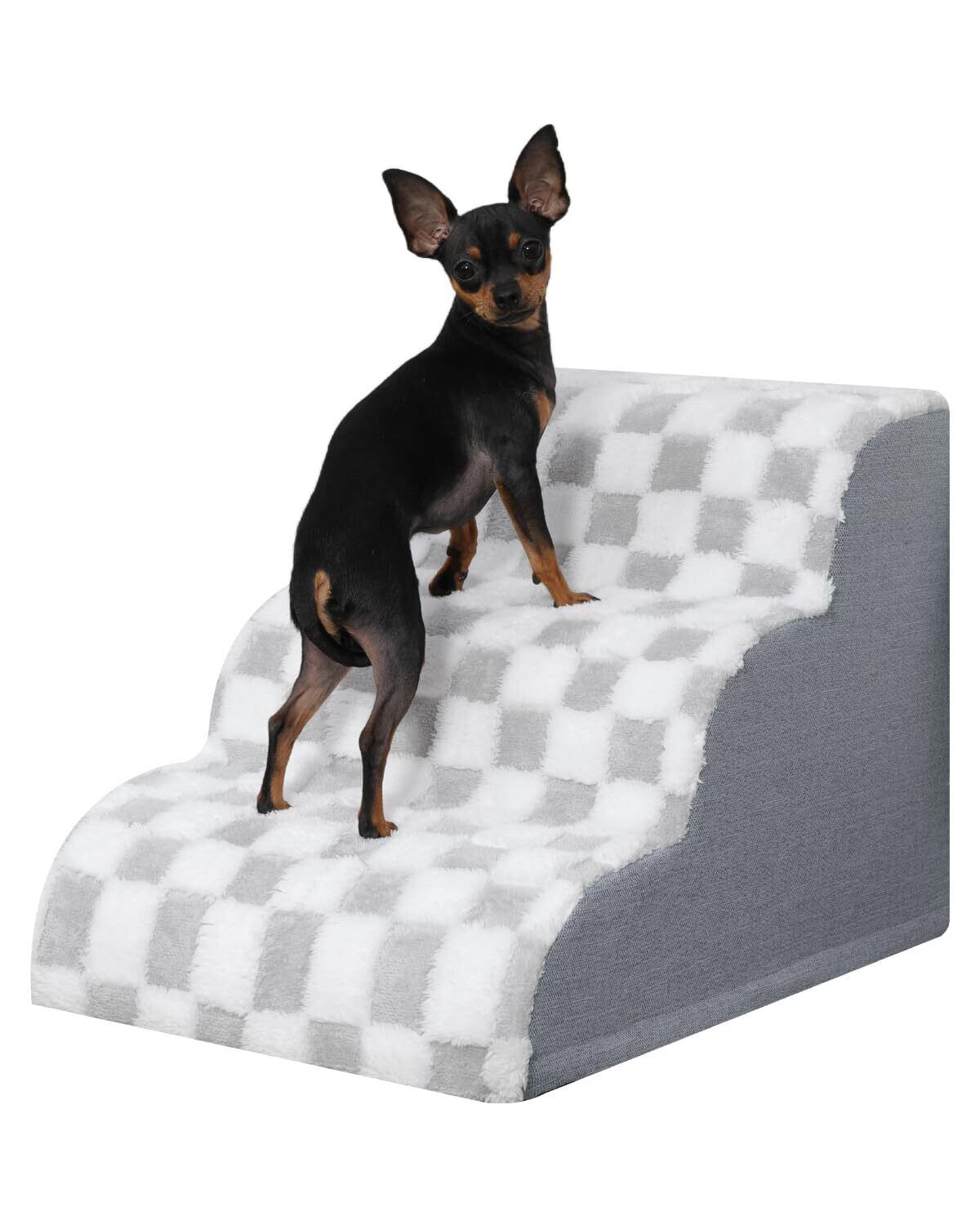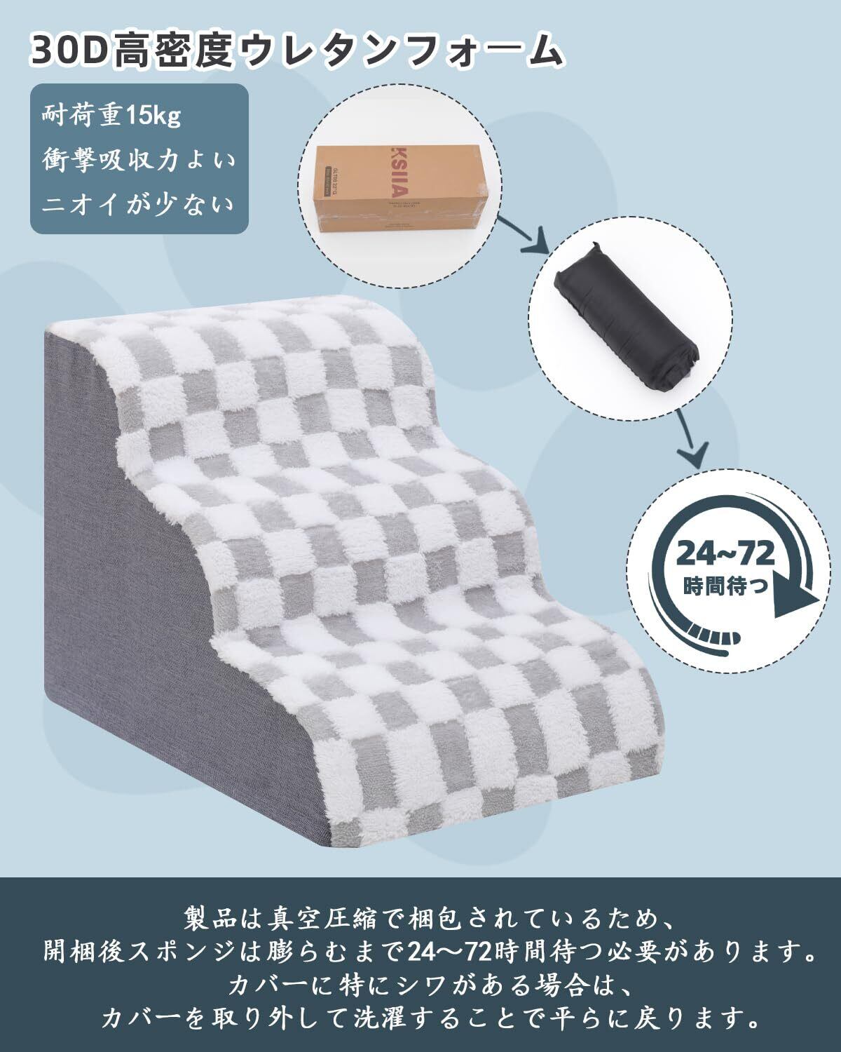 【30D高密度ドッグステップ】KSIIAの3段犬用階段は30D高密度の高反発ウレタンフォームを使用し、変形や破損がしにくいです。適度な硬さでしっかりと体を支え、小型犬、足の短いワンちゃん、怪我したジャンプできない犬、シニア犬などの昇り降りが苦手な子にオススメ!ペットの悩みをスッキリに解決します。