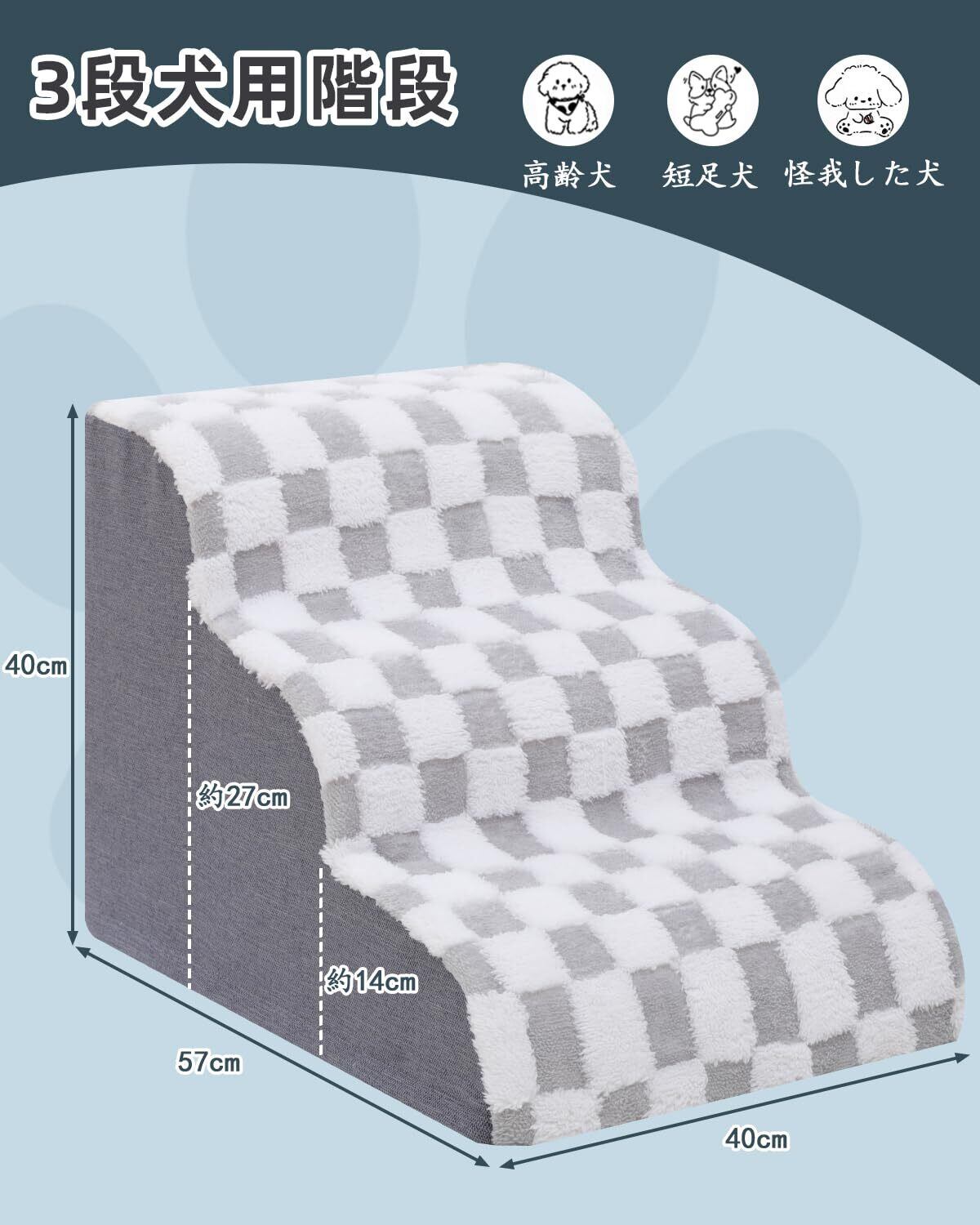 KSIIA 犬 階段 ステップ 高密度 ペット 階段 犬 ステップ 洗える 犬階段 滑り止め 犬用階段 取り外せるカバー ドッグステップ 安定性 3段 小型犬 高齢犬 57×40×40cm グレー