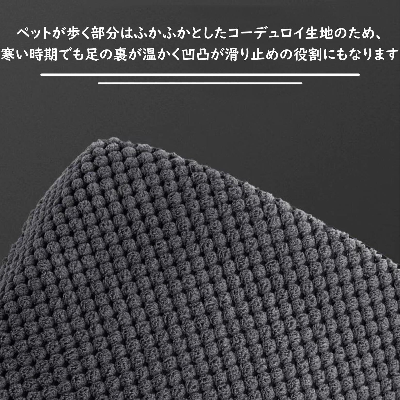 【滑り止め加工済みで安定感が良好】ペットが歩く部分はふかふかとしたコーデュロイ生地のため、愛犬の足にやさしい素材で滑り止め効果もあり、ペットの階段の上り下りも容易にできます。底部に滑り止め加工もあり、安定感が増し、ペットが乗ったときに階段のズレを防げます