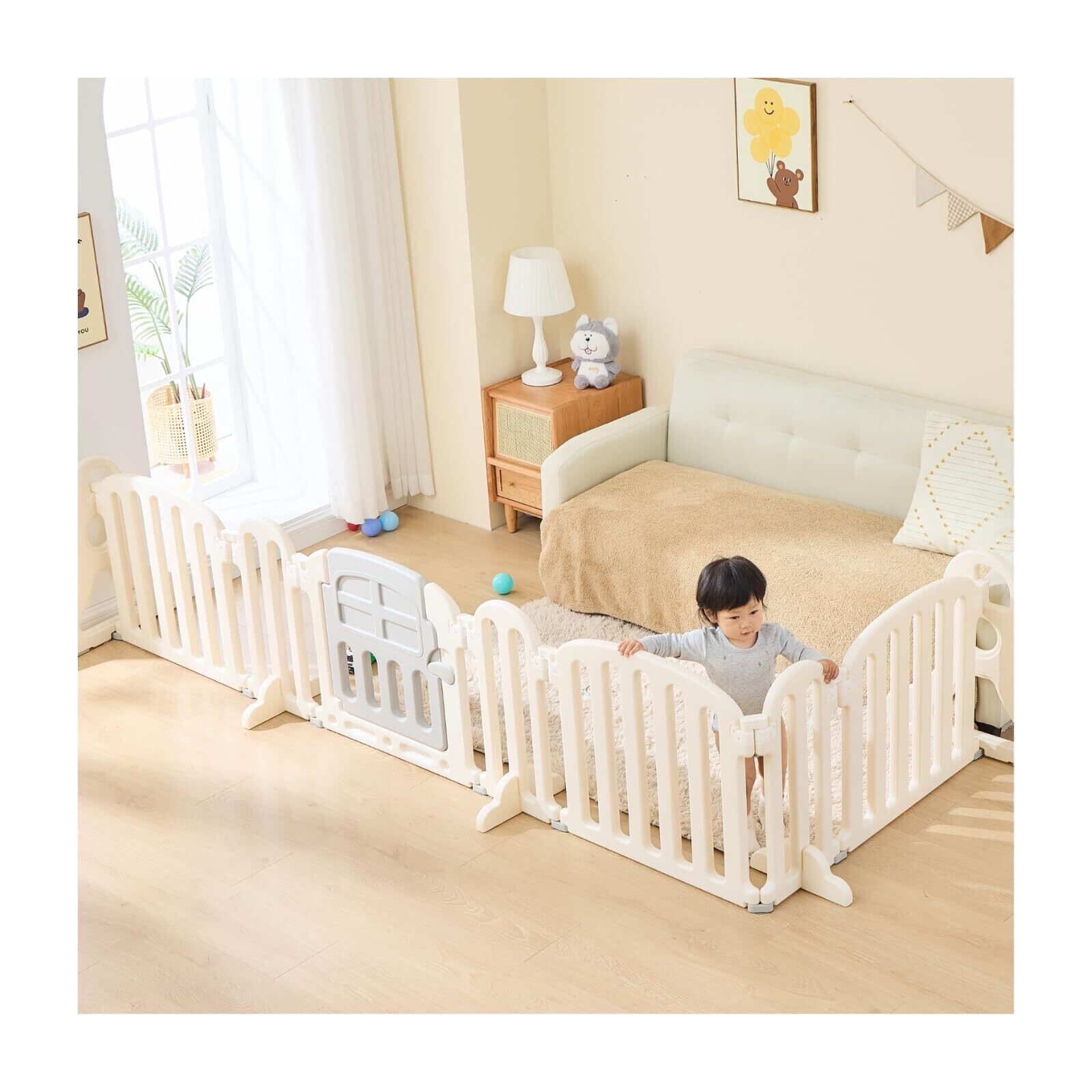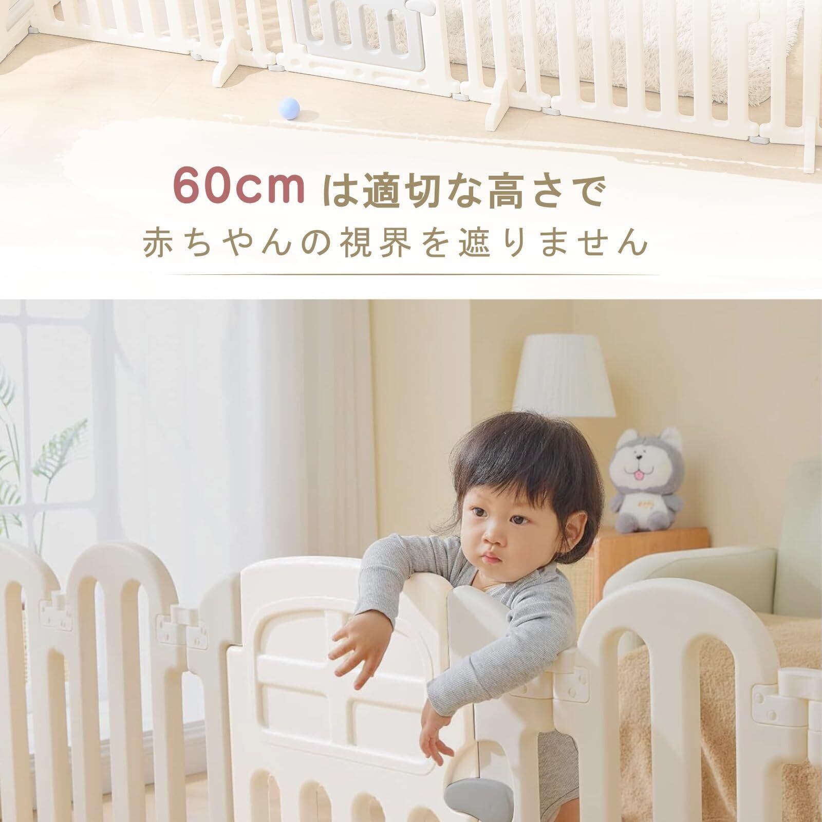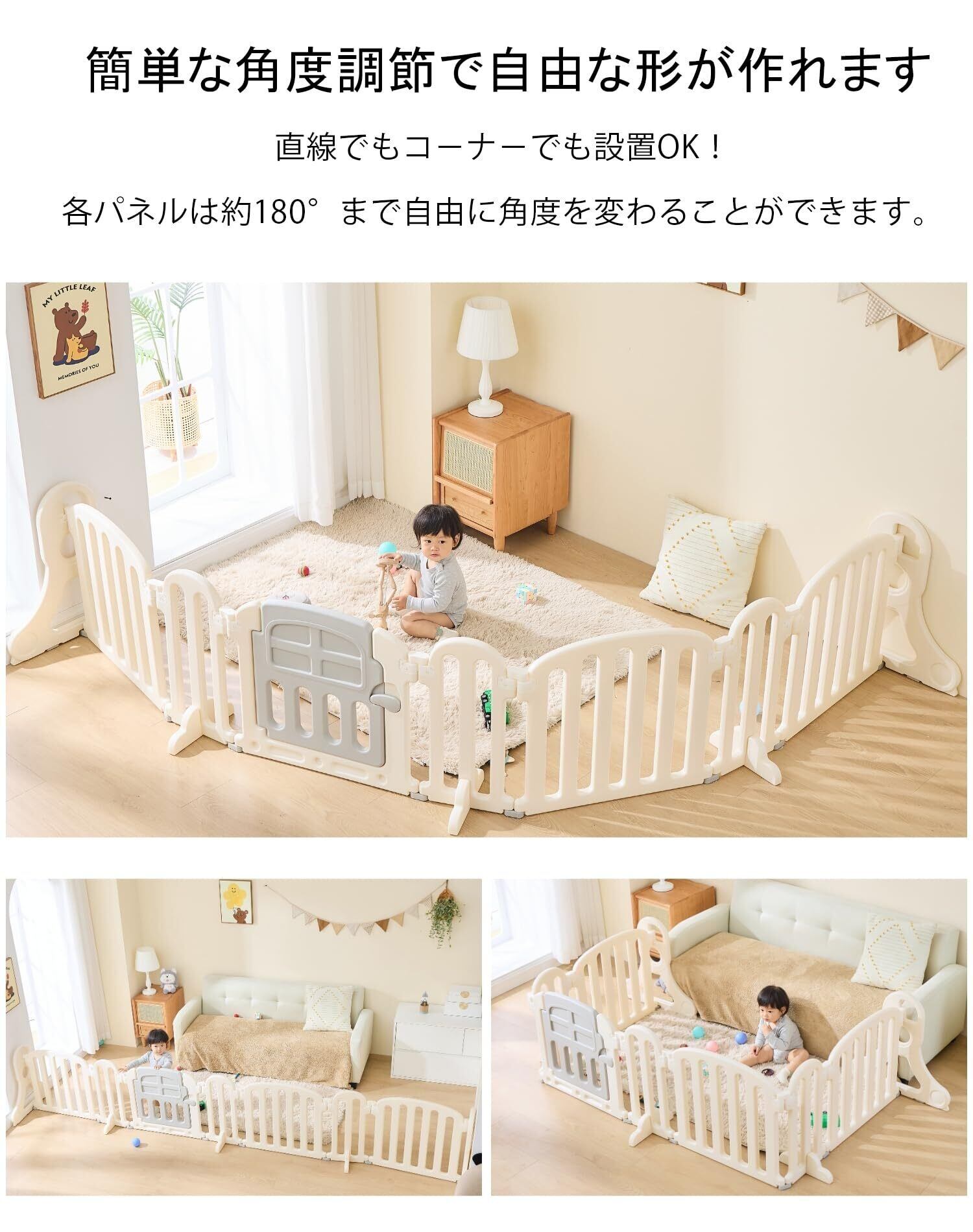 【多機能性】赤ちゃんだけでなくペットにも適用できる多機能性を持っています。ペットフェンスとして使用することで、ペットを特定のエリアに制限し、家庭内での安全を確保できます。例えば、キッチンやリビングルーム、廊下など、ペットがアクセスしてほしくない場所を簡単に隔離できます。お子さんとペットがいる家庭では、1つのアイテムで両方の安全を守ることができ、無駄な出費を抑えることができます。