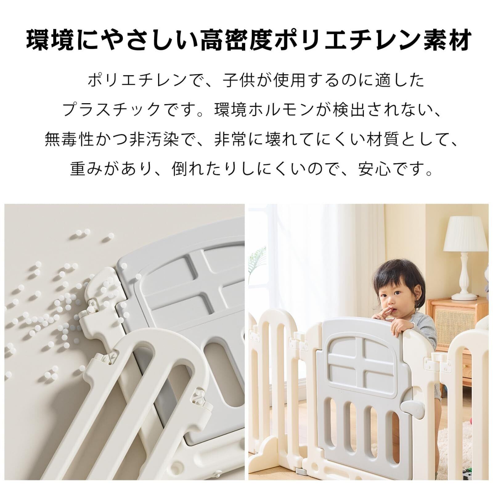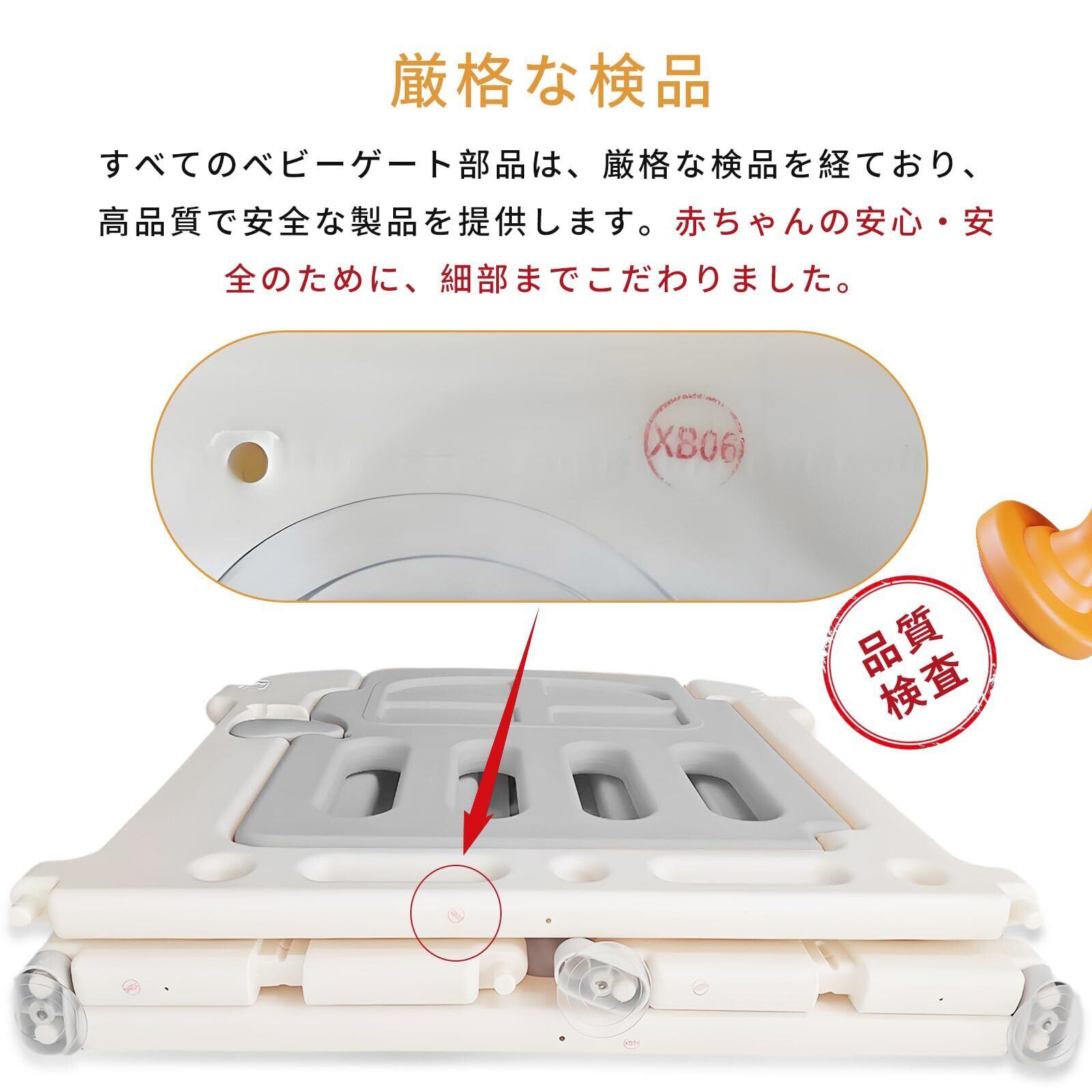 【耐久性】強固な素材で作られており、非常に高い耐久性を誇ります。お子さんが元気に走り回ったり、強く突っ込んだりしても、ゲートが壊れる心配はありません。さらに、ゲート自体は高品質な素材を使用しており、衝撃や摩耗にも強いため、日常的な使用に耐えることができます。お子さんの成長に合わせて、長い間活躍するアイテムです。