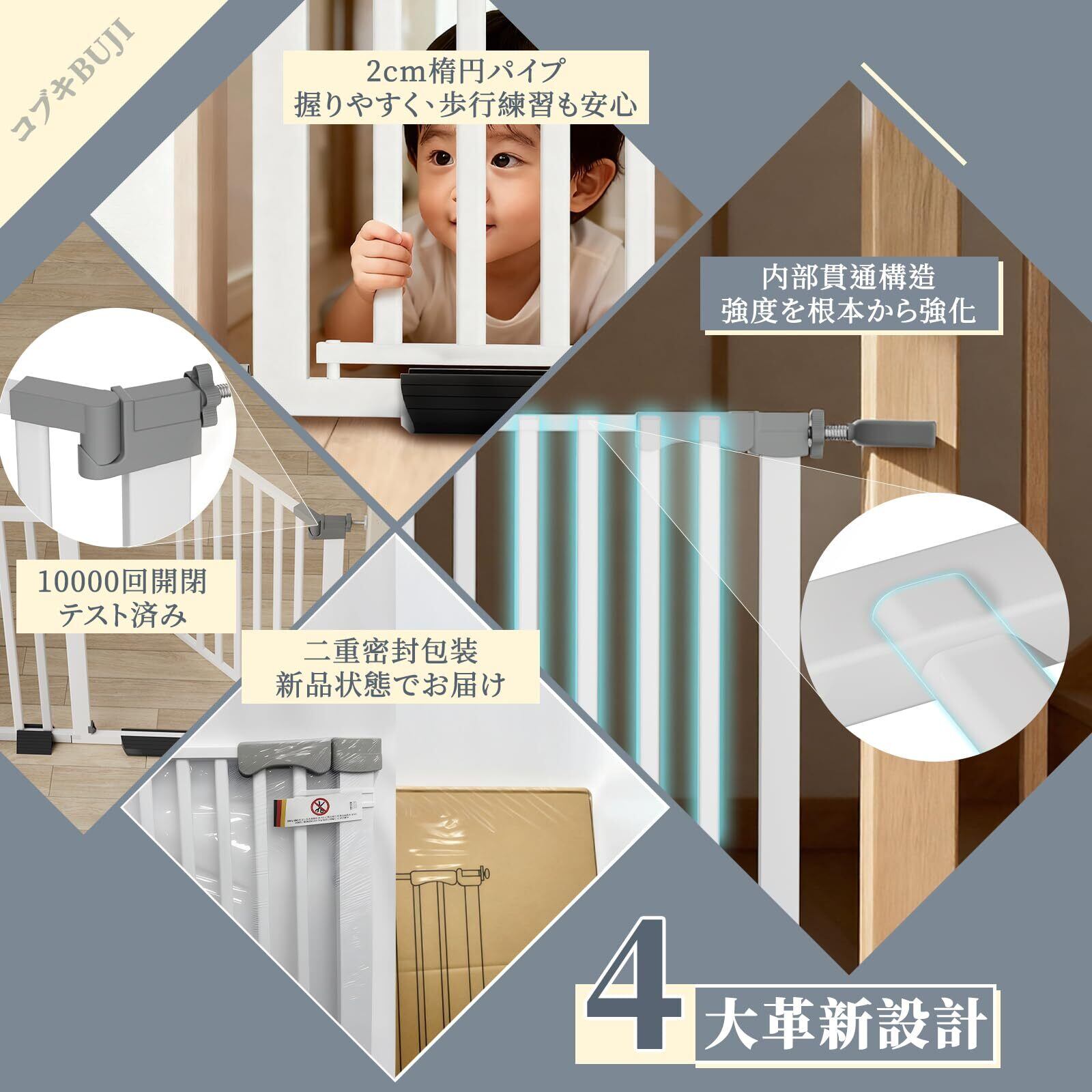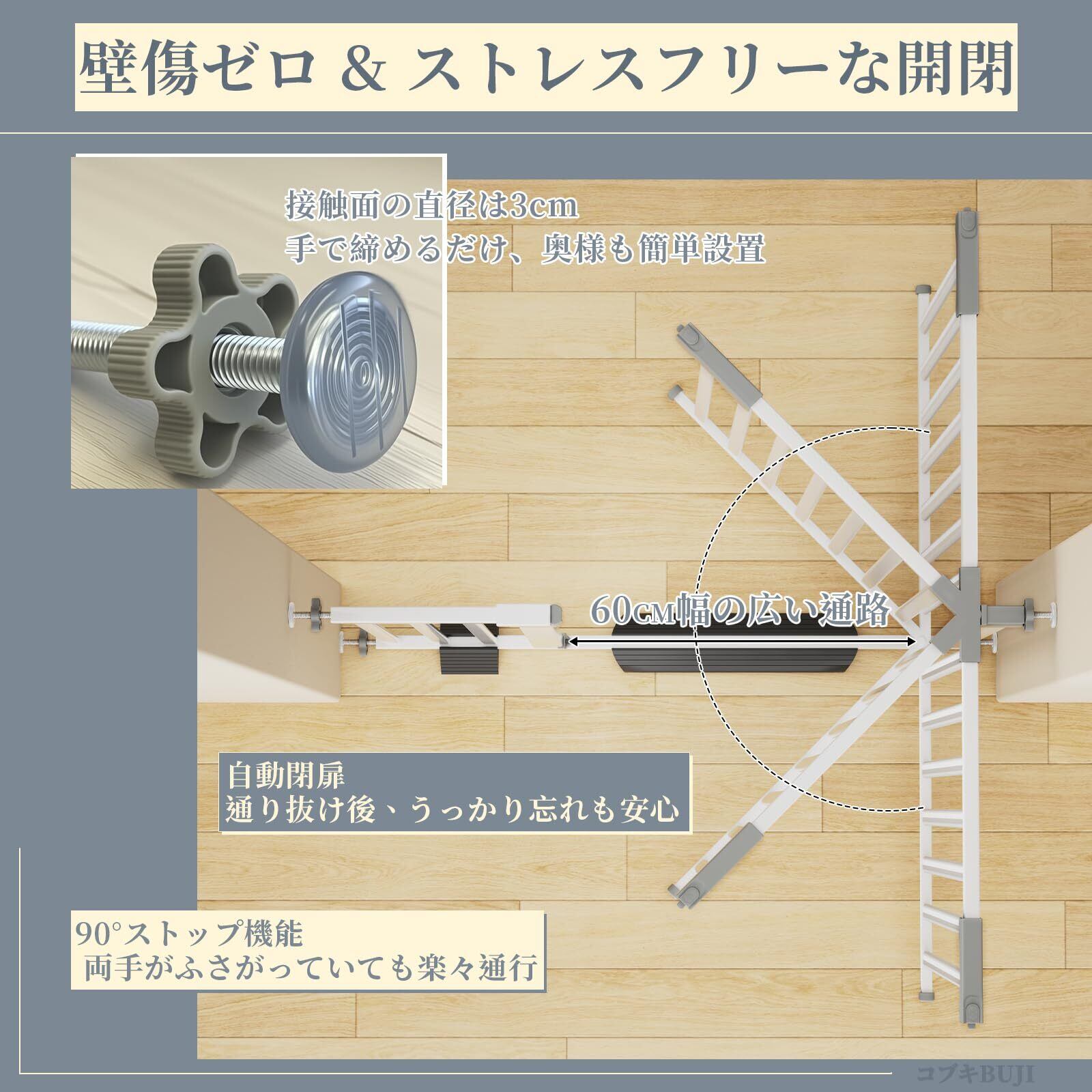 コブキBUJI【2025新改良】 ベビーゲート ハイタイプ ペットゲート 突っ張り式 高105cm 幅76~83cm 幅広 置くだけ 厚くスチールゲートドア付き 安心安全ダプルロック機能 前後90°自動開閉 階段 玄関 台所 室内 防げん柵 犬猫脱走防止 赤ちゃん ゲート
