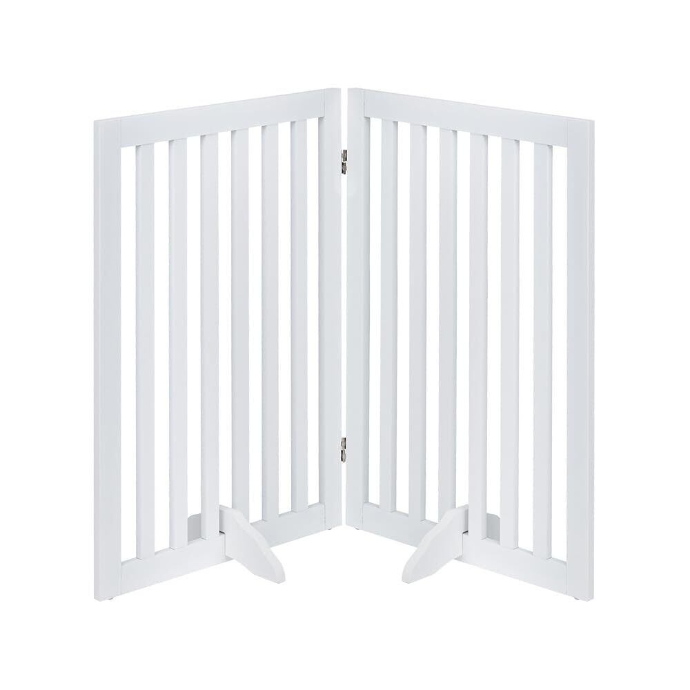 unipaws ペットゲート 置くだけ簡単 木製 折りたたみ式 伸縮可能(幅91-96cm 高さ91.5cm) 玄関/階段/ドア用 ペットガード 小型犬 猫 脱走防止 飛び出し防止 収納便利 室内パーテーション ペットフェンス ペット用柵 犬用ゲート、折り式バリア、ペット用家具フェンス 、白い ホワイト