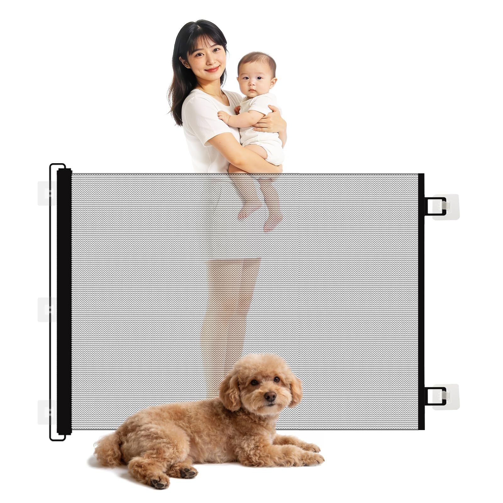Assky ベビーゲート ロール式 ペットゲート伸縮 取り付け簡単 粘着テープ式 ドリル不要 転落防止 ベビー 子猫、子犬 用 玄関 階段 キッチン 安全ゲート ブラック 110x78cm