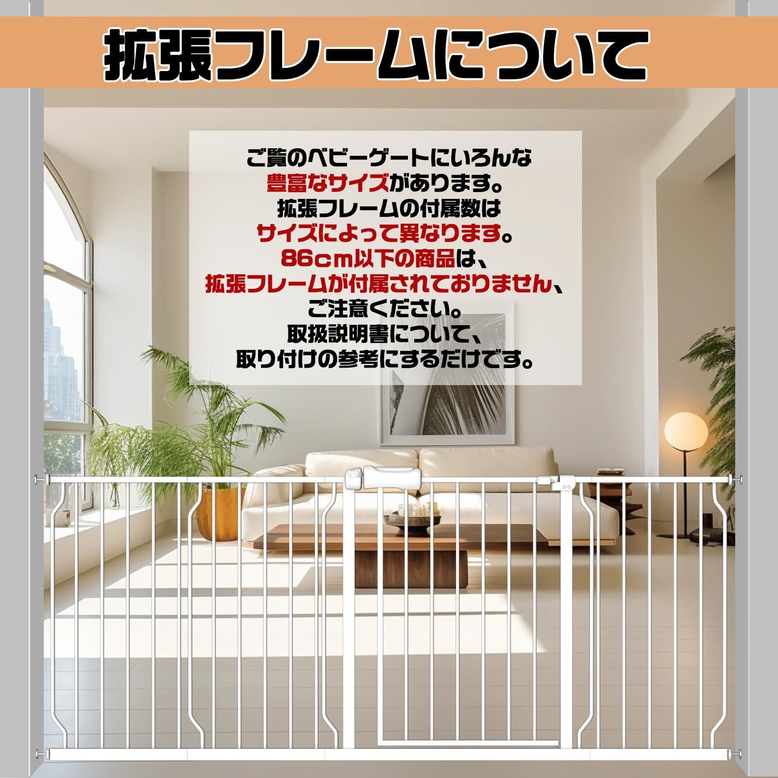 【取り付け簡単】ベビーゲートは壁への突っ張り式の設置方法ですので、穴を開ける必要なく、突っ張るだけで簡単に設置できます。ゲートを設置の時、ねじを締めていなかったら、閉められないかもしれません。ぜひご注意ください。ベビーゲートは赤ちゃんやペットがいる家庭に適しています。