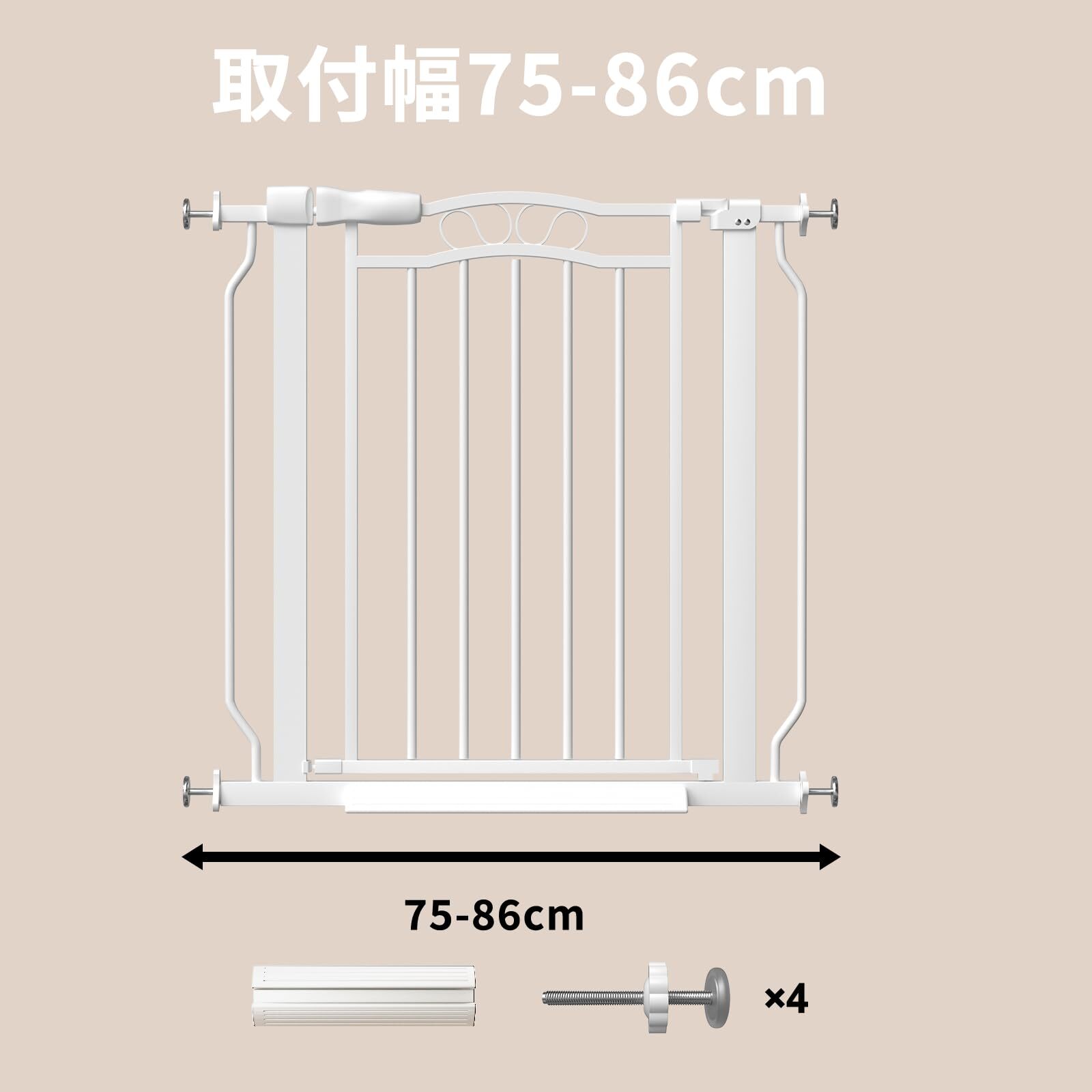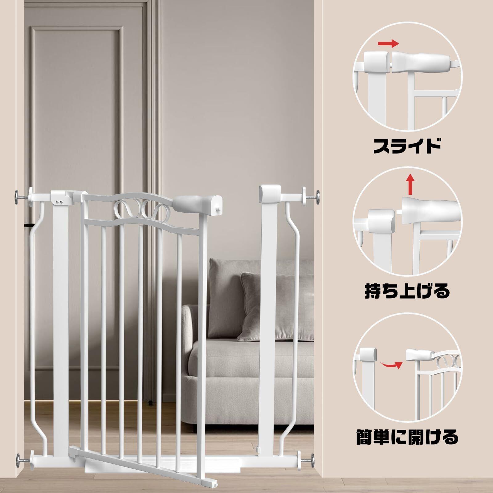 ウィードマップ ベビーゲート 設置幅75-86cm ホワイト ペットゲート バリアフリー ゲート 階段上 犬 自動ロック 突っ張り式 オートクローズ機能 扉開閉式 保護 扉開閉式 赤ちゃん 拡張可能 壁 ベビーガード 柵 高さ78cm